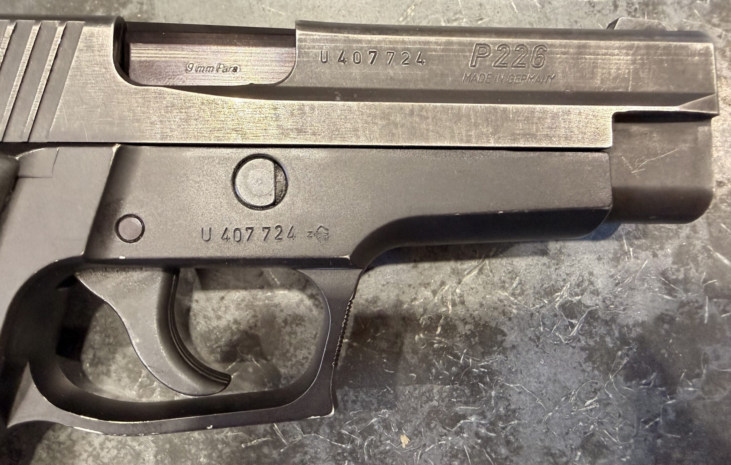We’ve just received German SIG Sauer P226 in 9mm Parabellum / 9x19mm with the factory original box, Serial Number U407724.