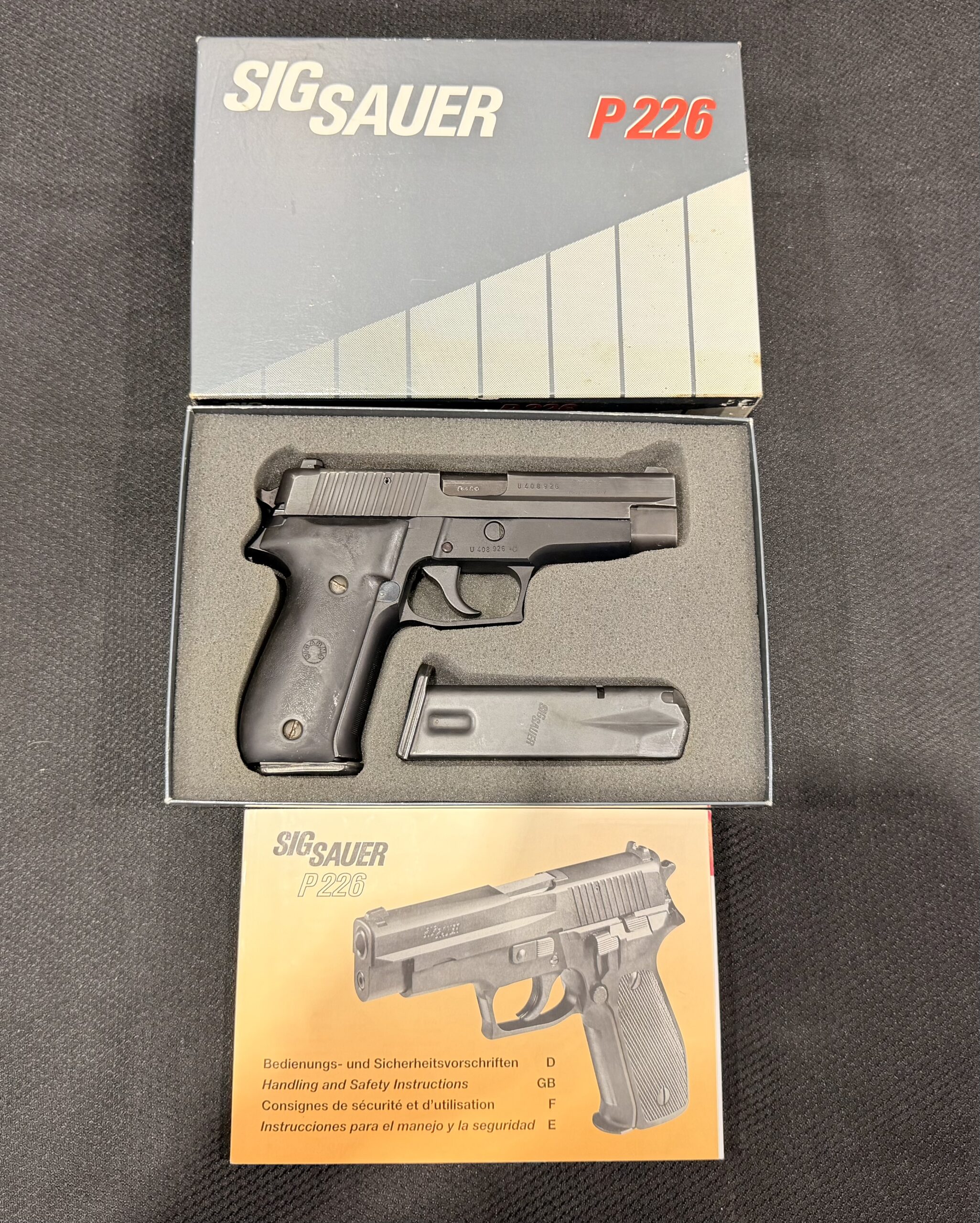 We’ve just received German SIG Sauer P226 in 9mm Parabellum / 9x19mm with the factory original box, Serial Number U408926.