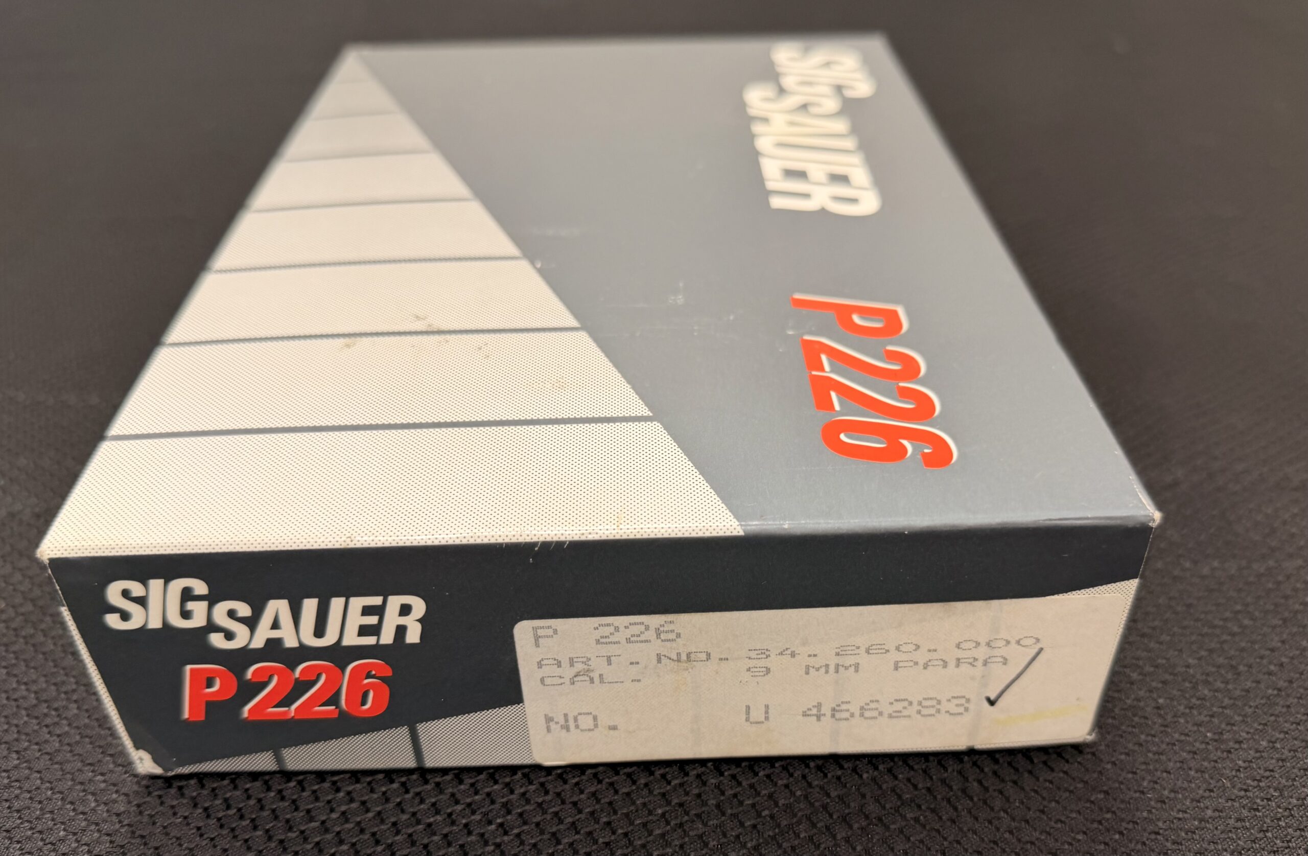 We’ve just received German SIG Sauer P226 in 9mm Parabellum / 9x19mm with the factory original box, Serial Number U466283.