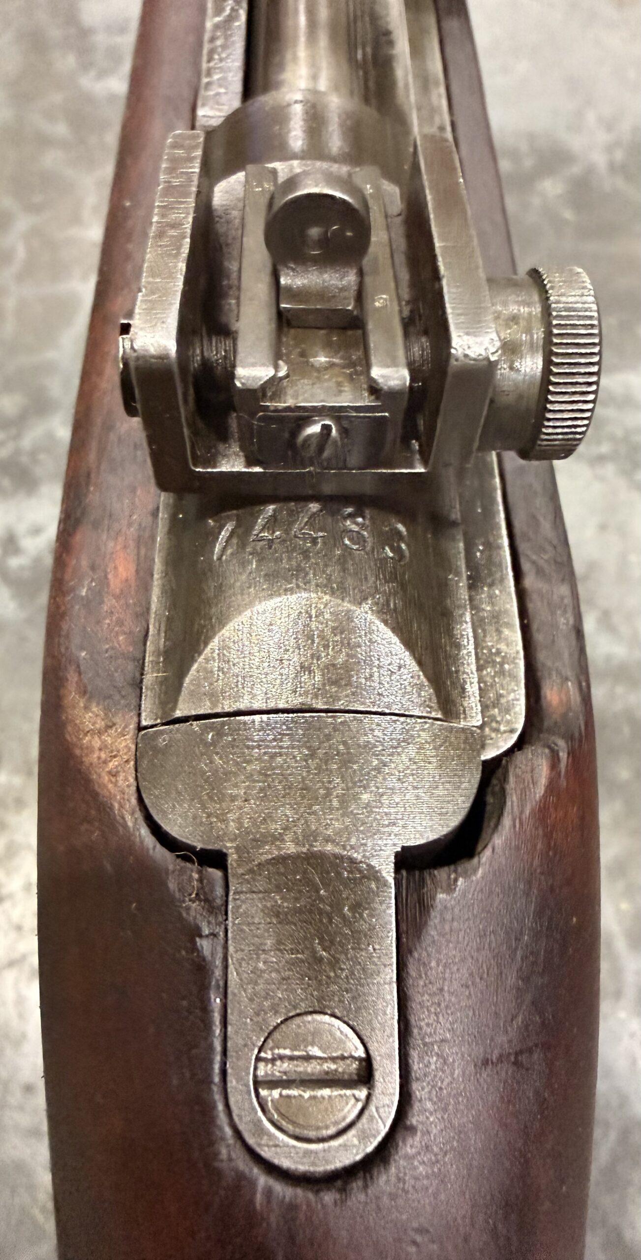 This carbine features a Type II rear sight, a Type III front barrel band. The receiver, barrel, and trigger group are in good condition.