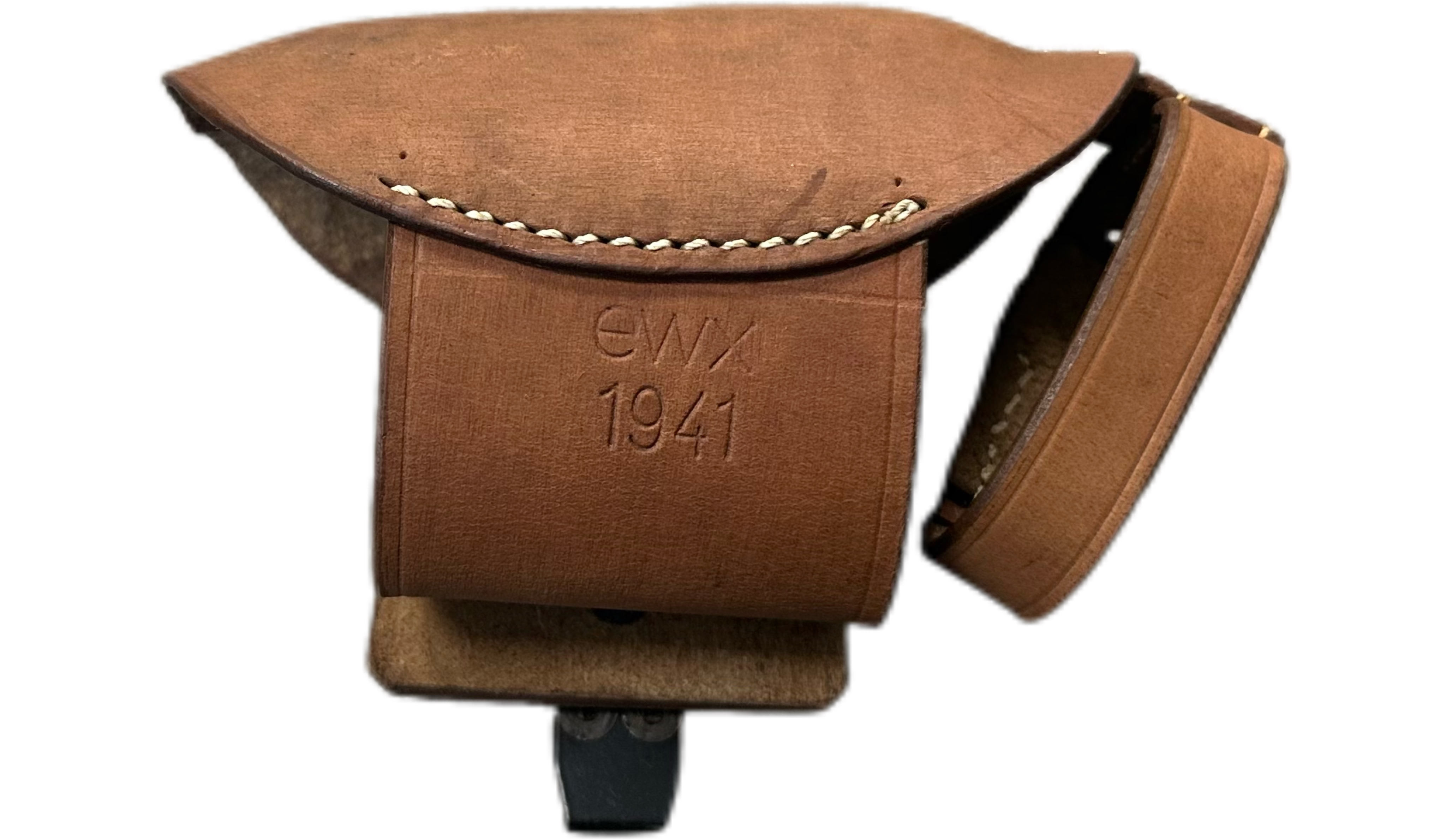 K98 Rear Sight Leather Cover, Reproduction. These covers are made from leather and are marked ‘EWX 1941.’ They may show some very light surface rust but are otherwise in very good condition.