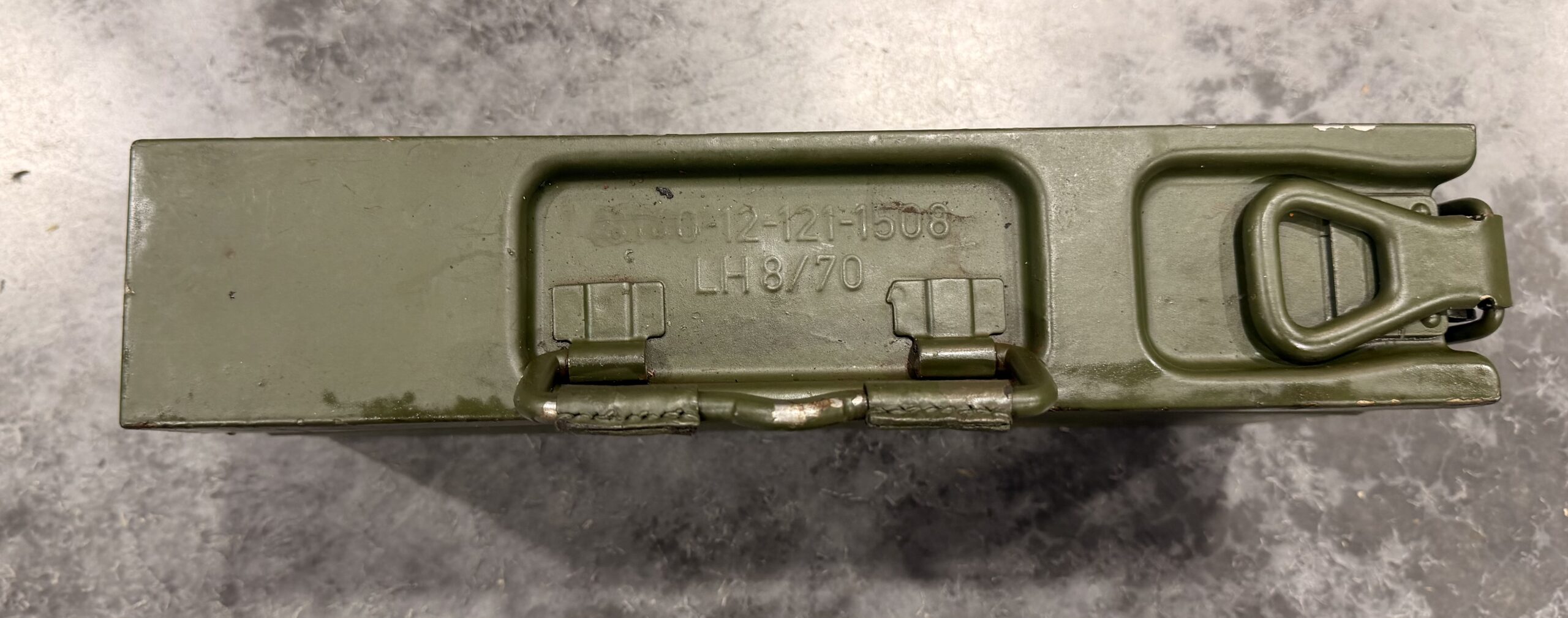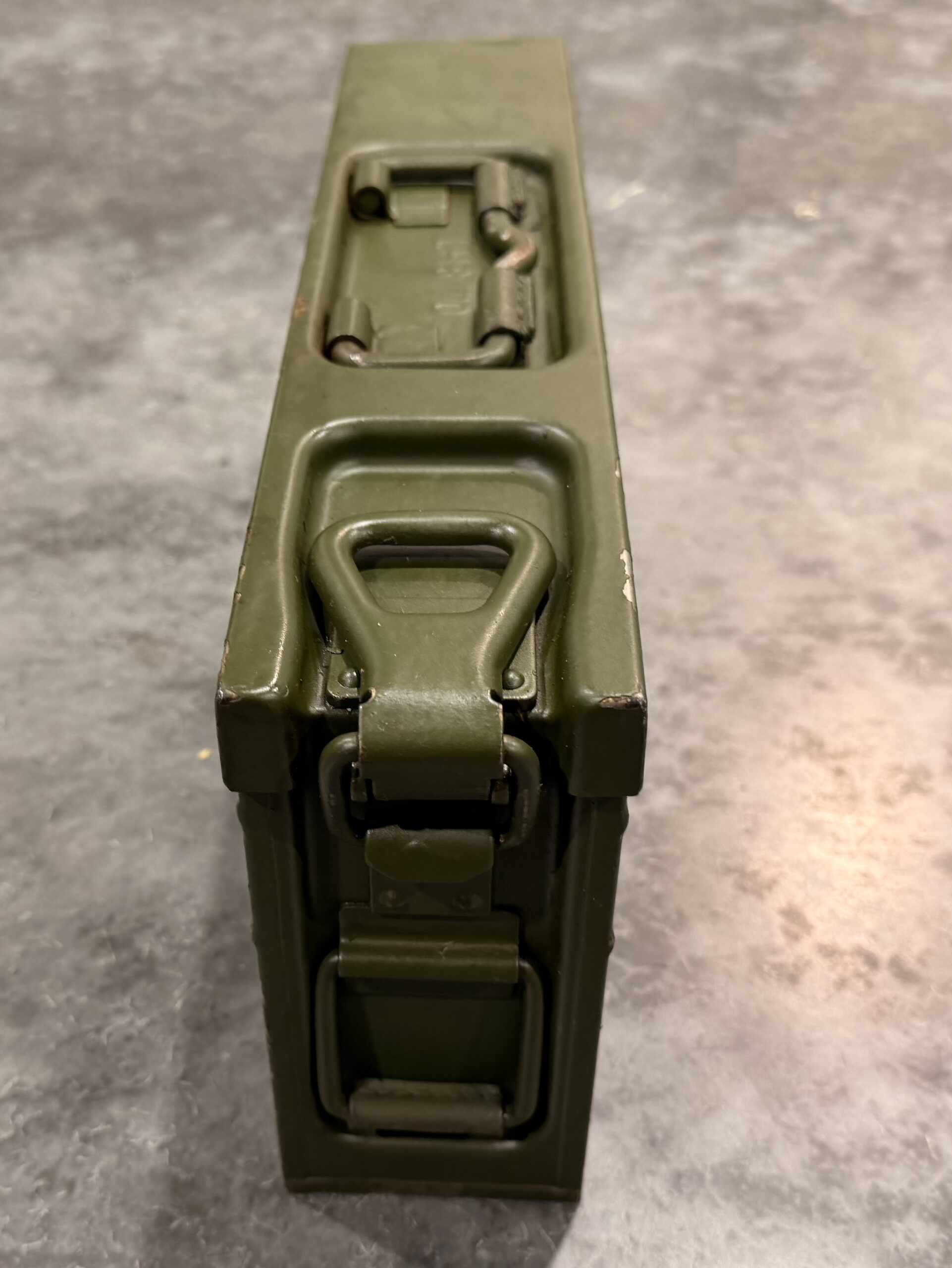 MG3/MG42 Ammunition Boxes available now. These ammunition boxes are in good to very good condition. Comes with 5 50 round belts and starter tab for 7.62 NATO. The belts are complete and functional with no damage. May have some light surface rust. Made post WWII for the Bundeswehr. These boxes are functional, however they will have handling wear and may have some dings or dents.