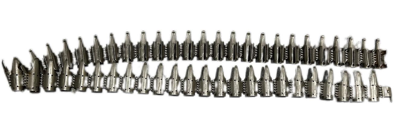 We have for sale MG3/ MG42, 7.62 Nato / .308 50rnd belts in good condition. Please note they may have some light surface rust. 50rnd belt only, does not include starter tab. This belt also works for the M53, MG3 and HK21. Some of these belts made by Rheinmetall.