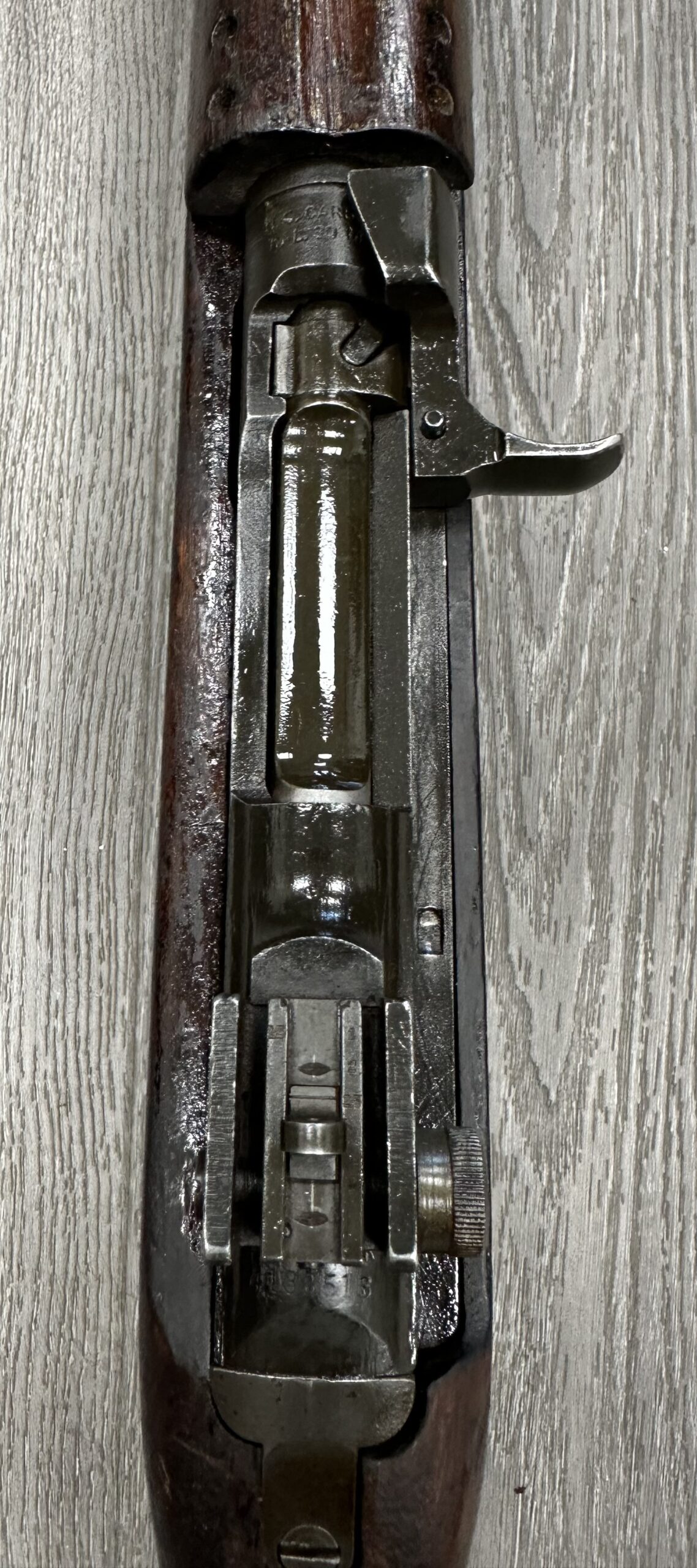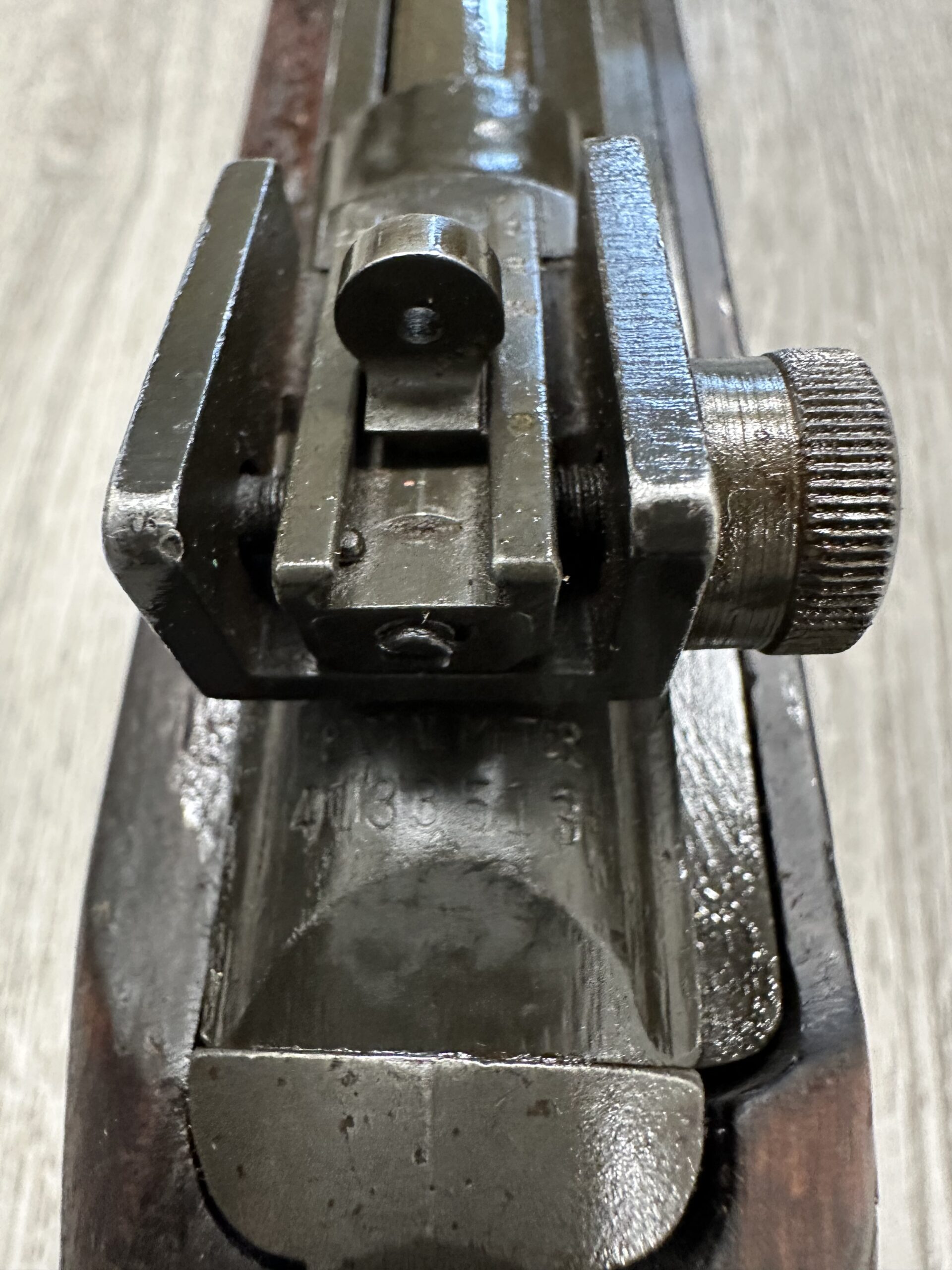This carbine features a Type 2 rear sight and a Type 3 front barrel band. The receiver, barrel, and trigger group are in good condition.