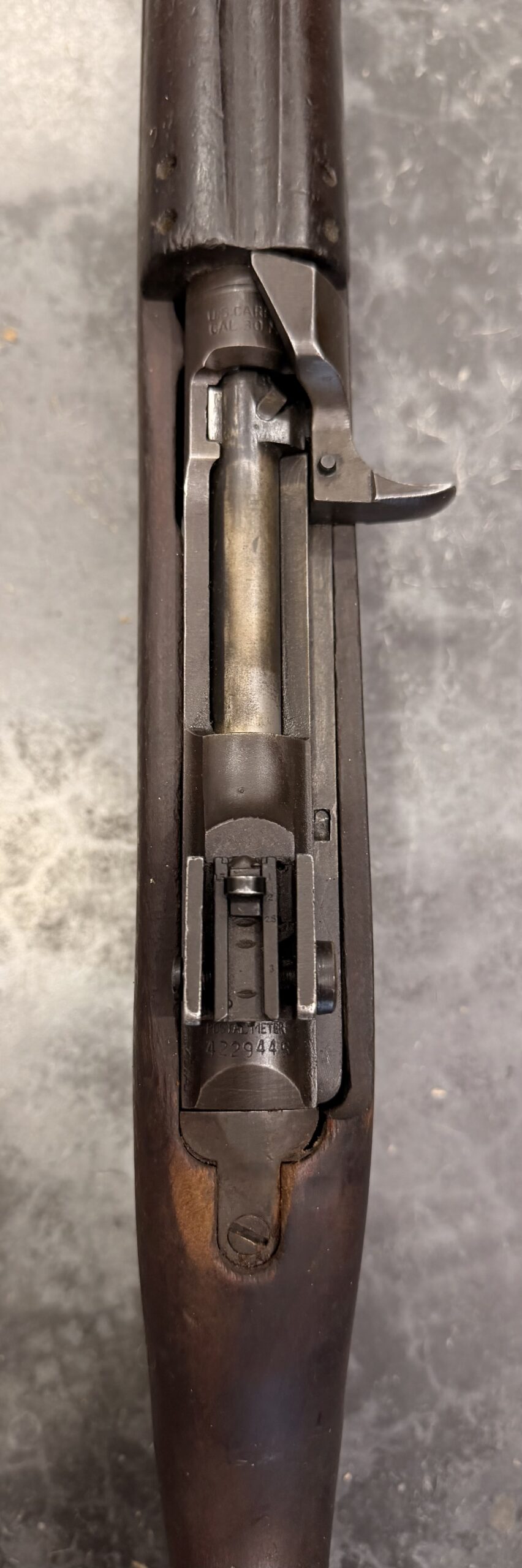 This carbine features a Type III rear sight and a Type I front barrel band. The receiver, barrel, and trigger group are in very good condition.