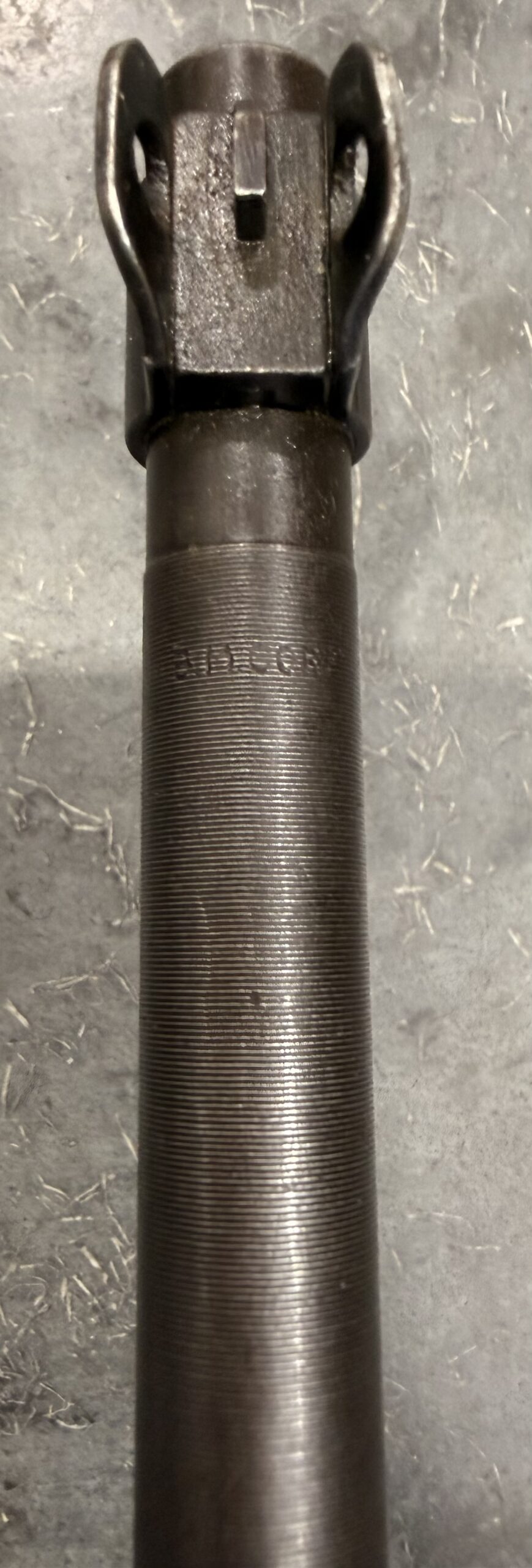 The stock is in good overall condition. The bore gauges at 3.0 and remains in good condition. The barrel is IBM-marked.