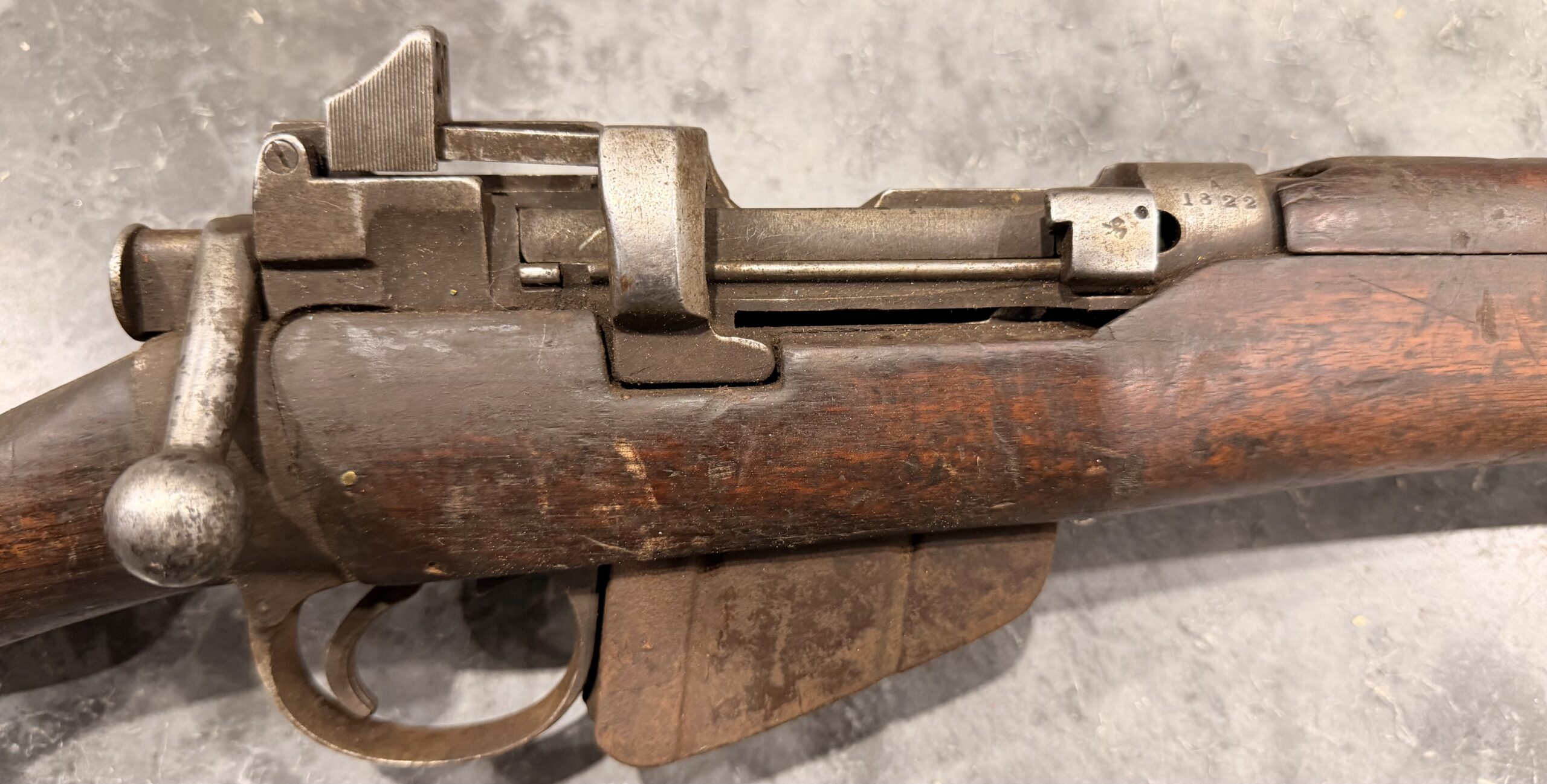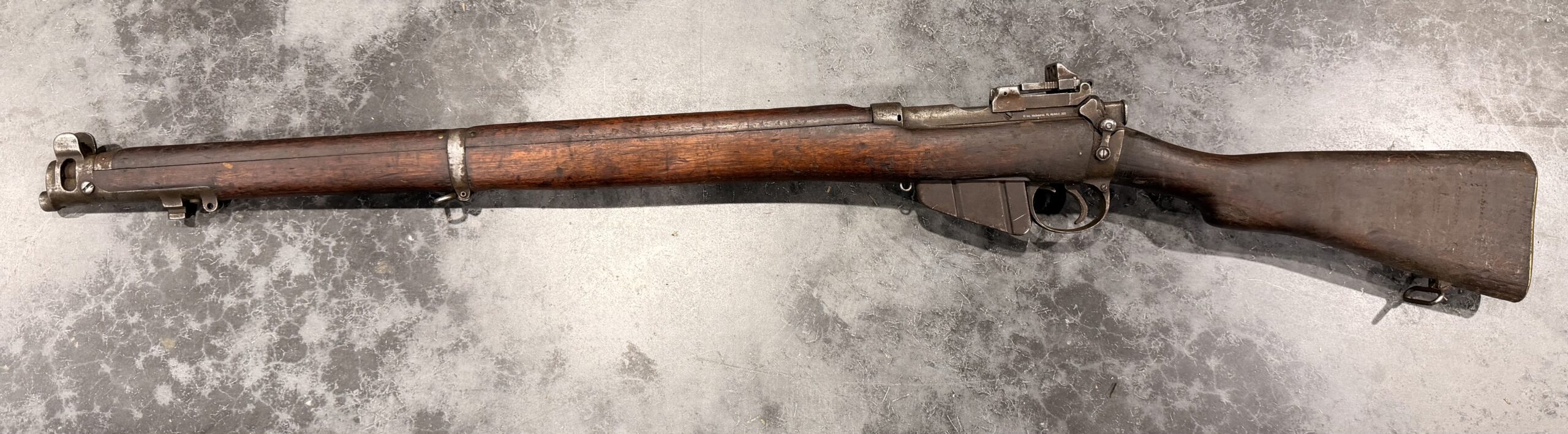 This very rare No. 1 Mk V Enfield Trials rifle was manufactured in 1924 and is in fair to good overall condition. The bore is in poor condition. Please note that the rear sight is bent and not fully functional. The rifle itself is functional.