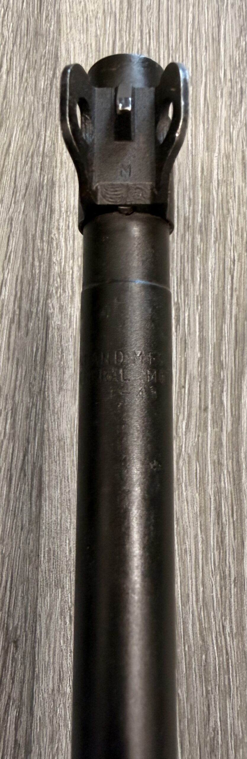 The stock is in very good overall shape. The finish is excellent with minimum wear. The bore gauges at 0.5 and remains in excellent condition. The barrel is Inland-marked and dated 1-43.