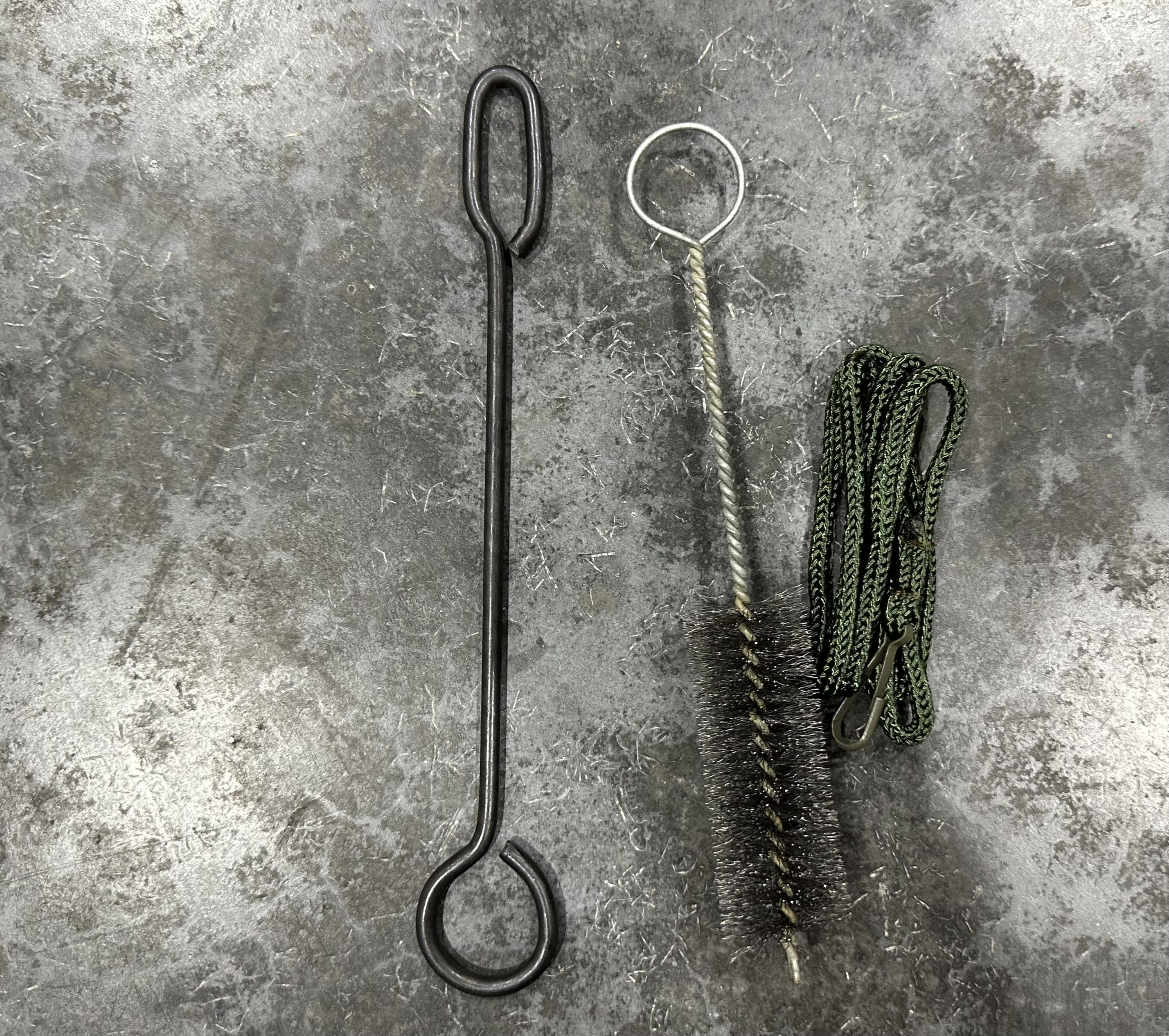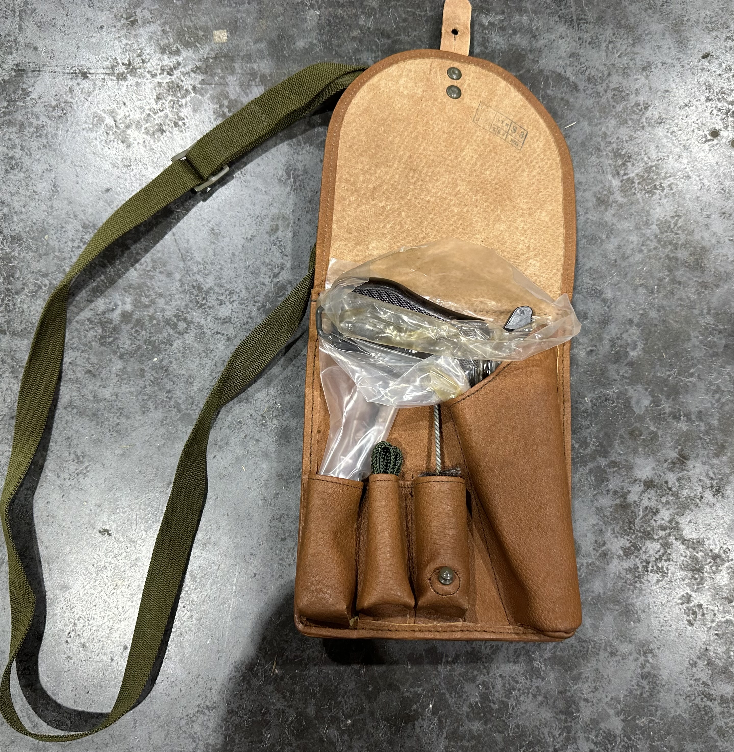 The included carrying cases are stamped under the flap with various markings, including the manufacturer’s date. Each case comes with the original cleaning rod, brush and lanyard and are in very good condition. The leather carrying cases are generally in excellent to like new condition as well.