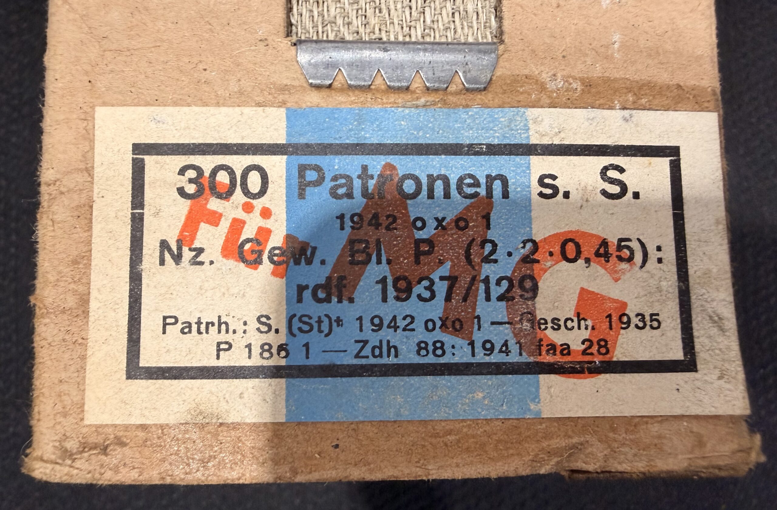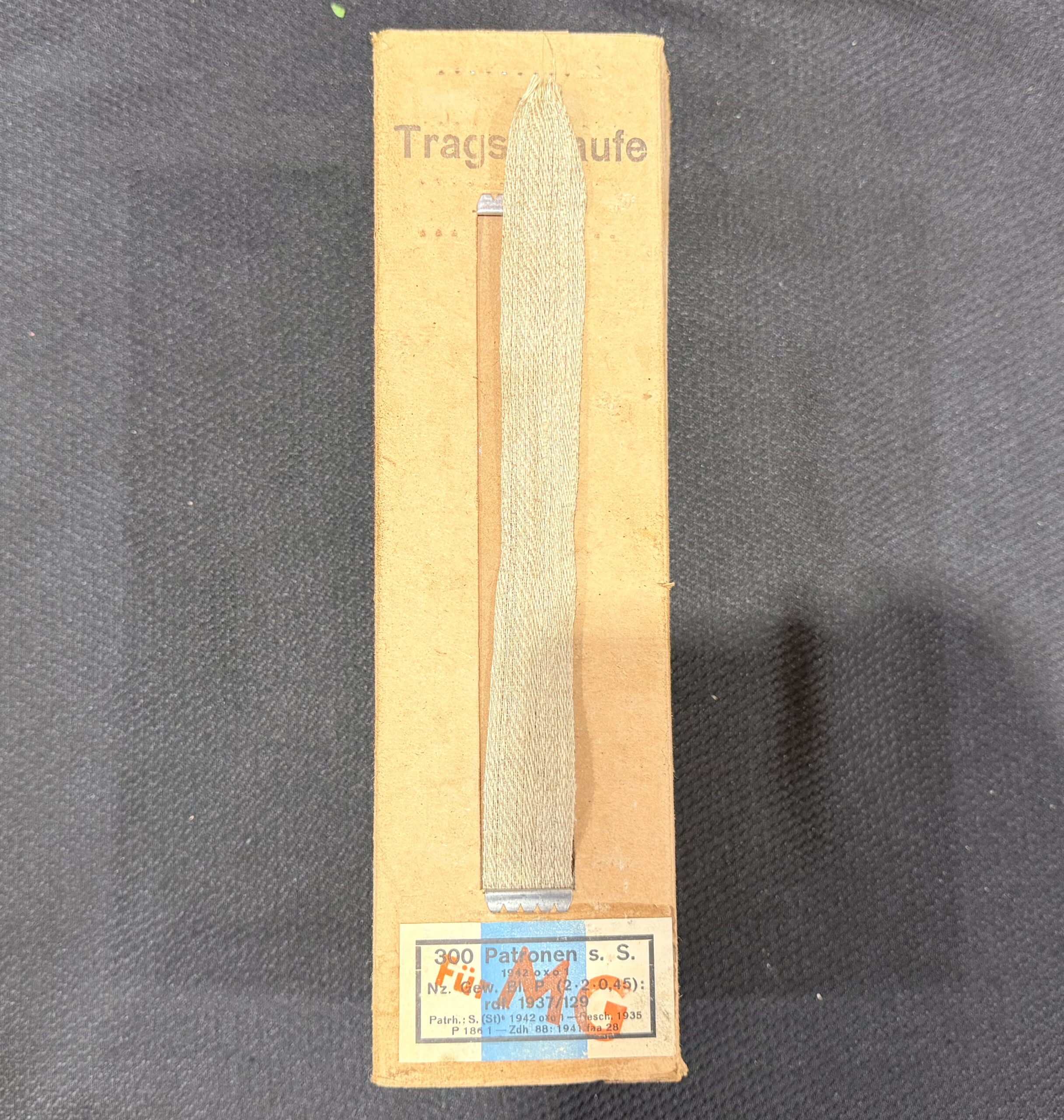 We have for sale Original WWII 8mm Mauser German Ammunition Cases in good to very good condition. These cases feature the original label. Please note that the original strap may be cut. They are great for an authentic display.