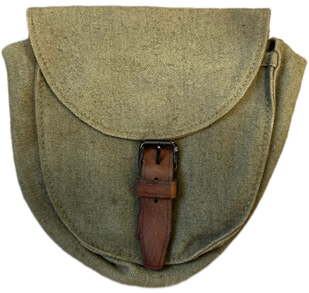 We have for sale Soviet army drum magazines bag for PPSH41 in original condition. A pouch made of coarse tarpaulin with long loops for the waist belt. Lid with leather strap on steel buckle.