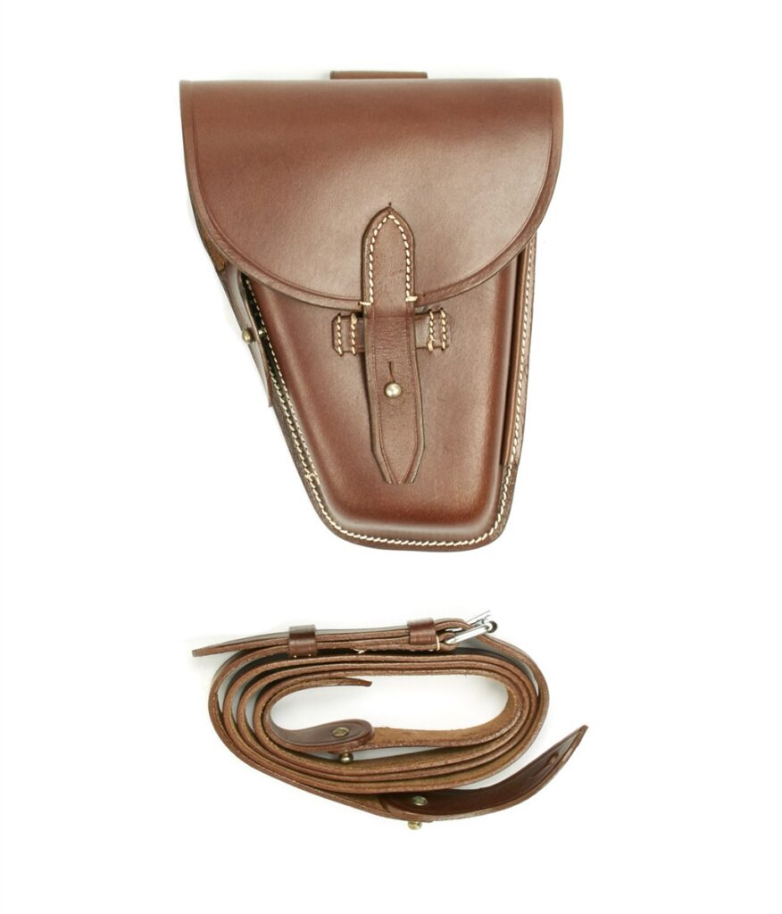 New Reproduction of the original pre-WWII VIS 35 holsters. High quality reproduction made of real leather. Comes with the shoulder sling pictured and features the side sleeve for the cleaning rod as well as the pockets for two magazines. Get yours today!
