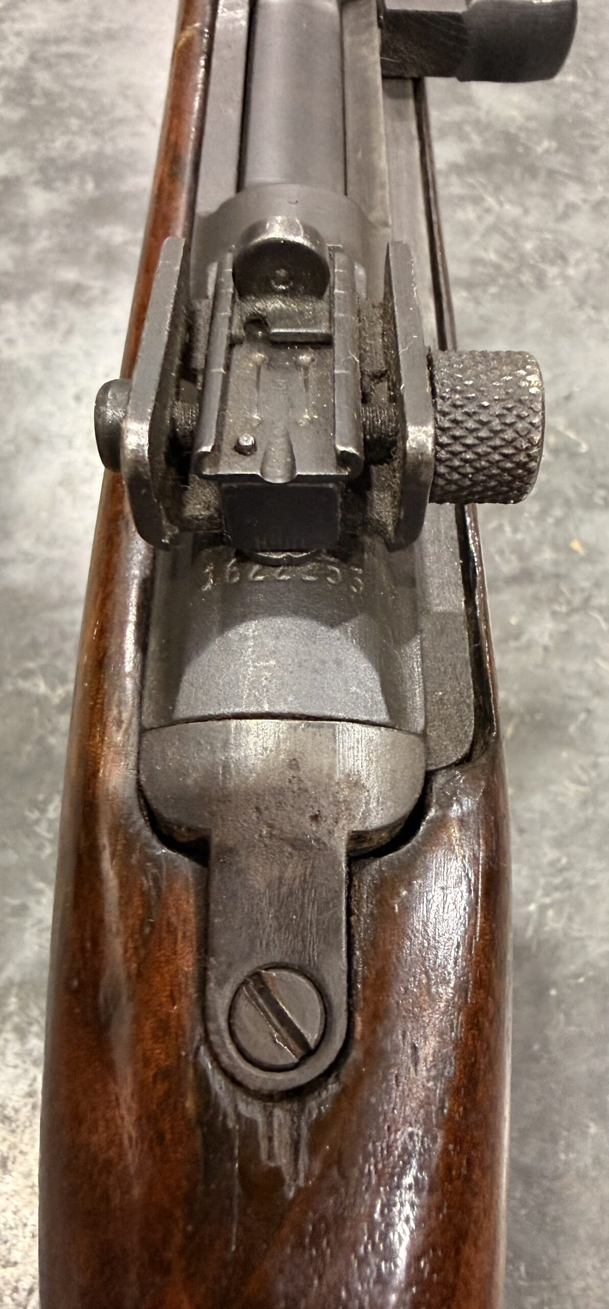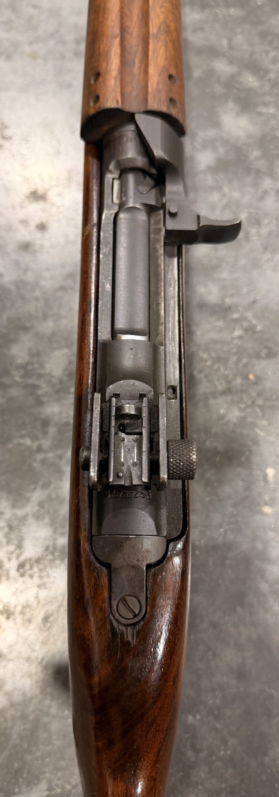 This carbine features a Type III rear sight, a Type III front barrel band. The receiver, barrel, and trigger group are in excellent condition.