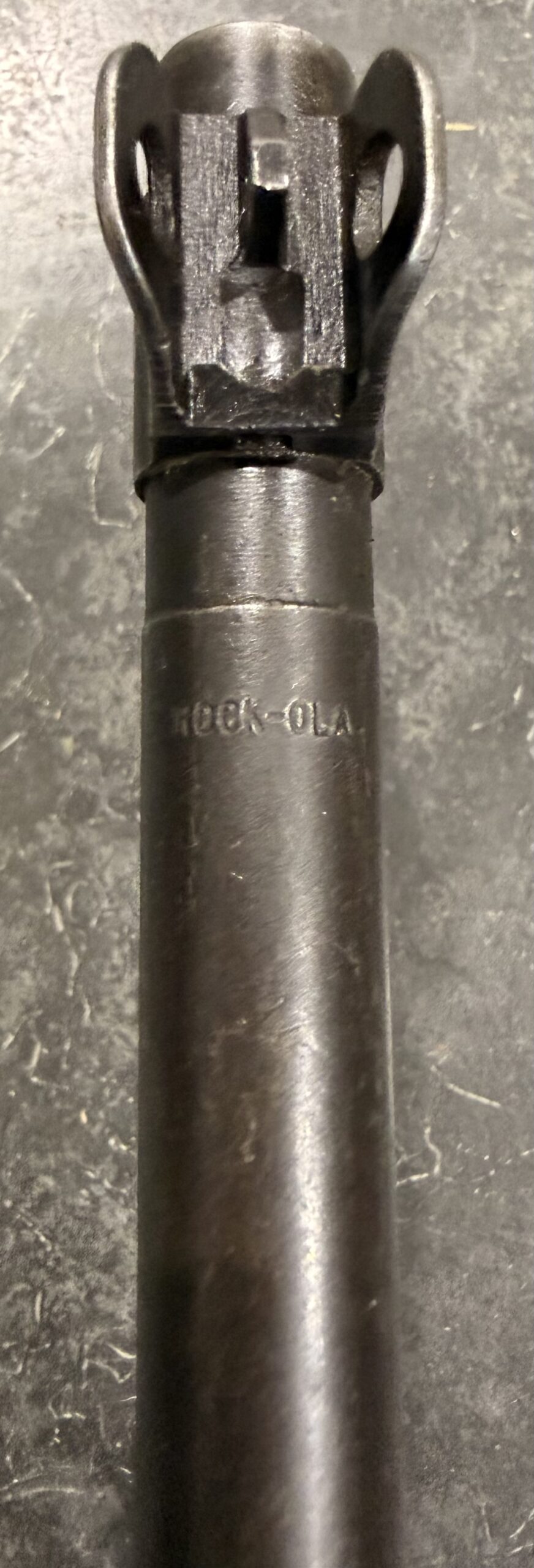 The bore gauges at 2.5 and remains in very good condition. The barrel is Rock-Ola-marked and undated.