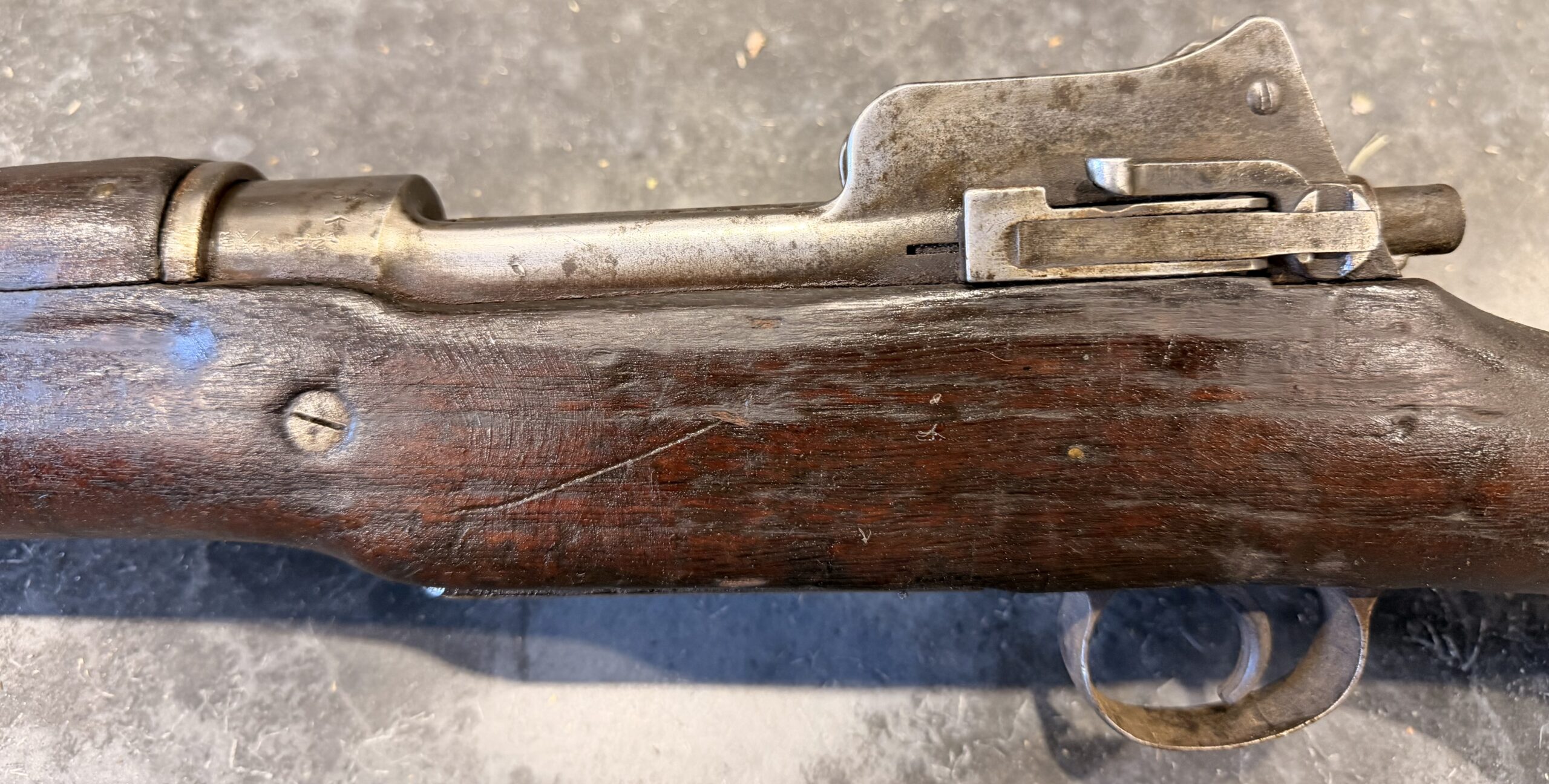 This rifle is complete and has passed a basic function test. The bore is in poor condition. The wood is in overall good condition, showing typical handling wear, including dings and scratches.