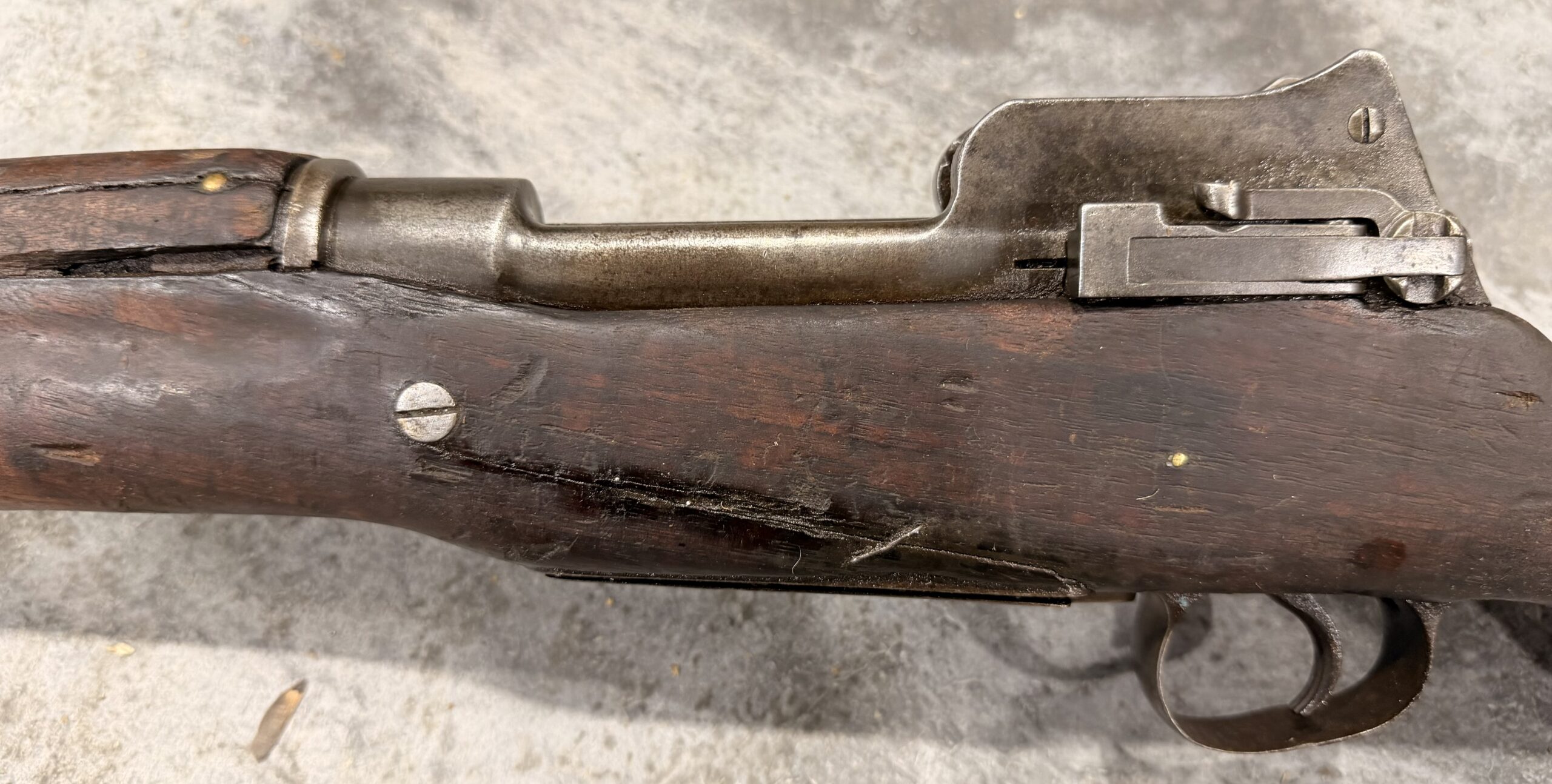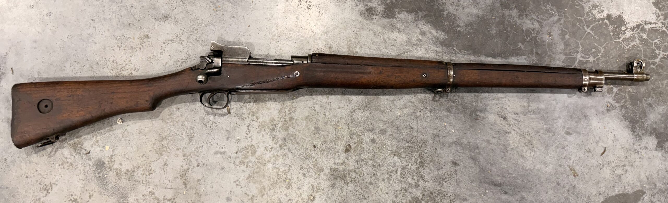 Manufactured by Remington. This rifle is complete and has passed a basic function test. The bore is in poor condition. The wood is in overall fair condition, showing typical handling wear, including dings and scratches.