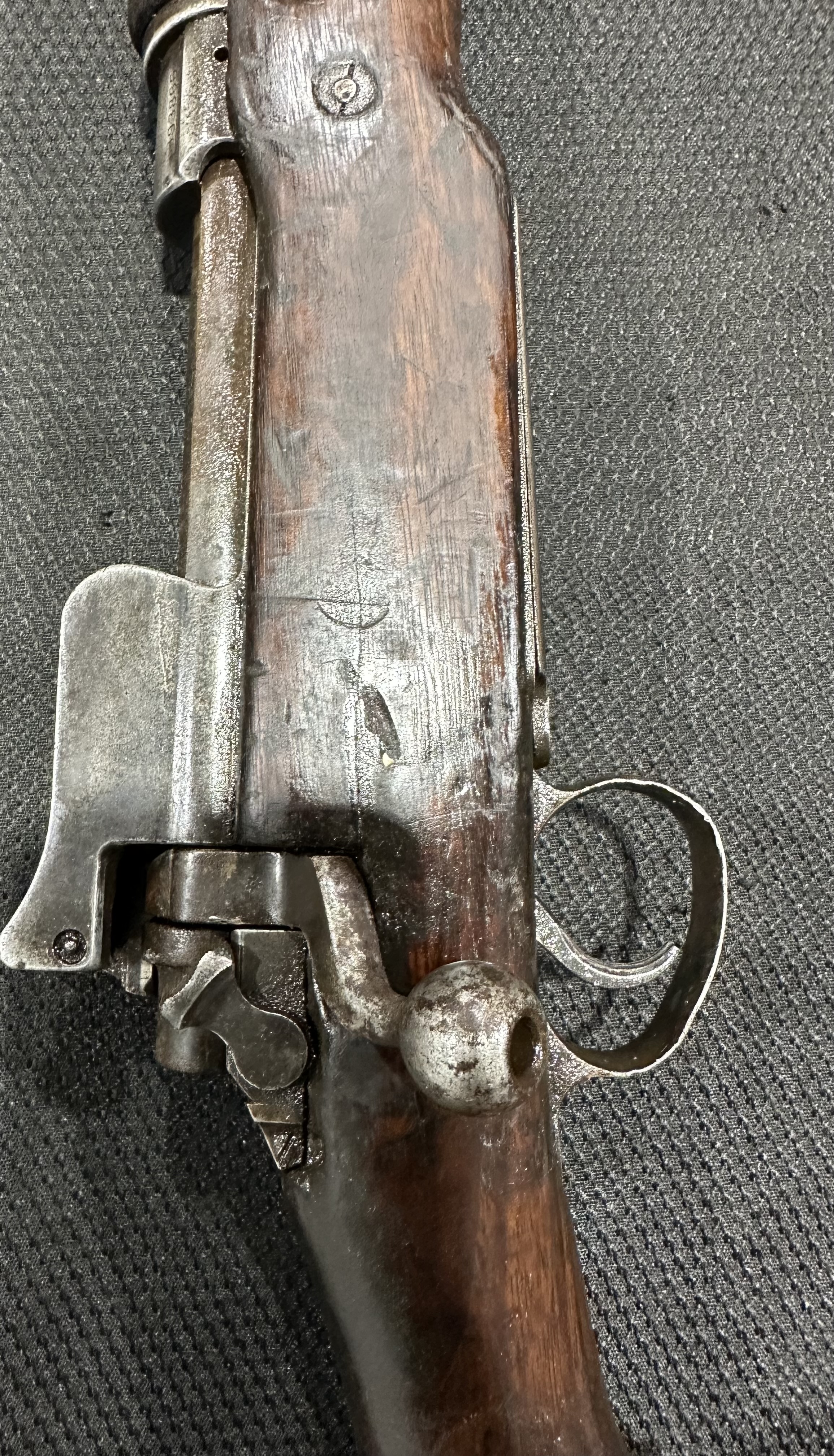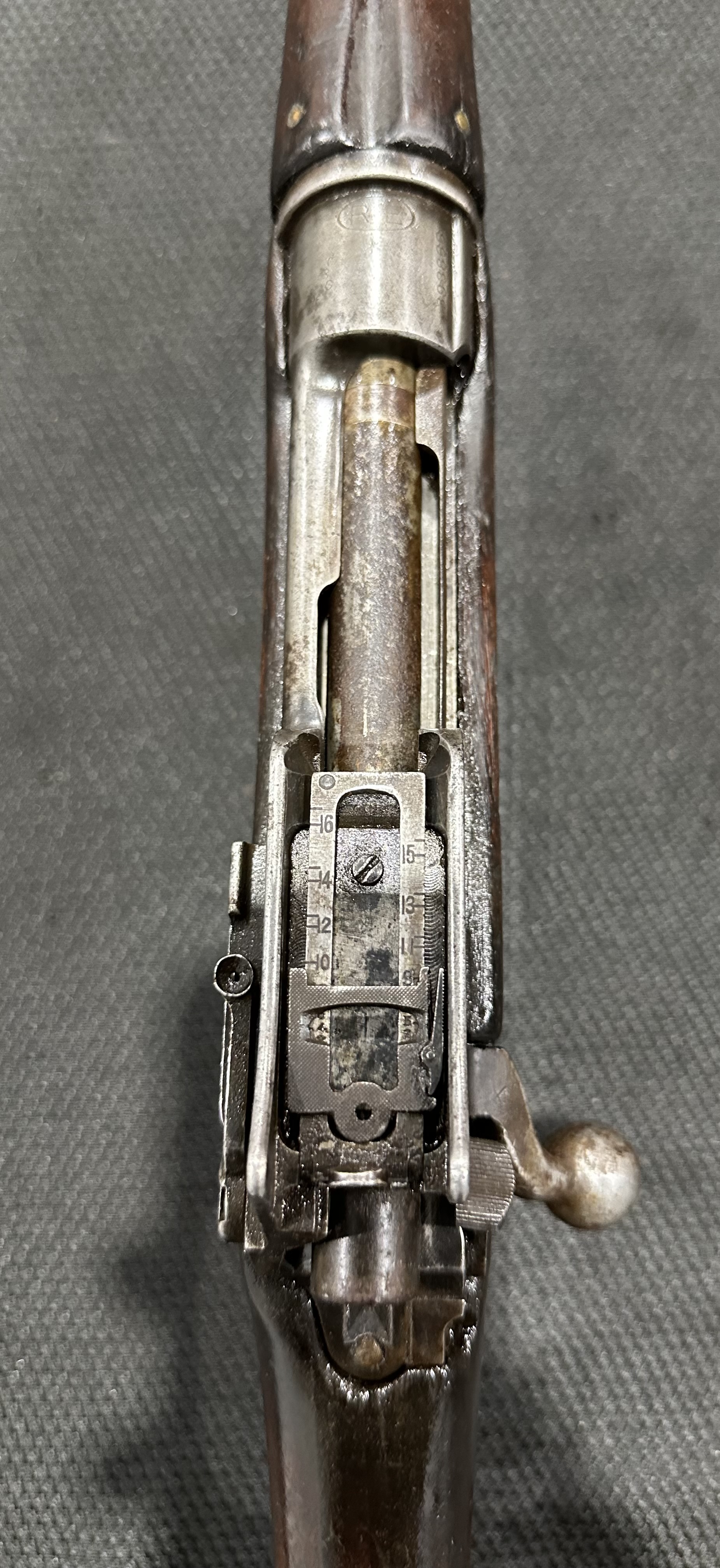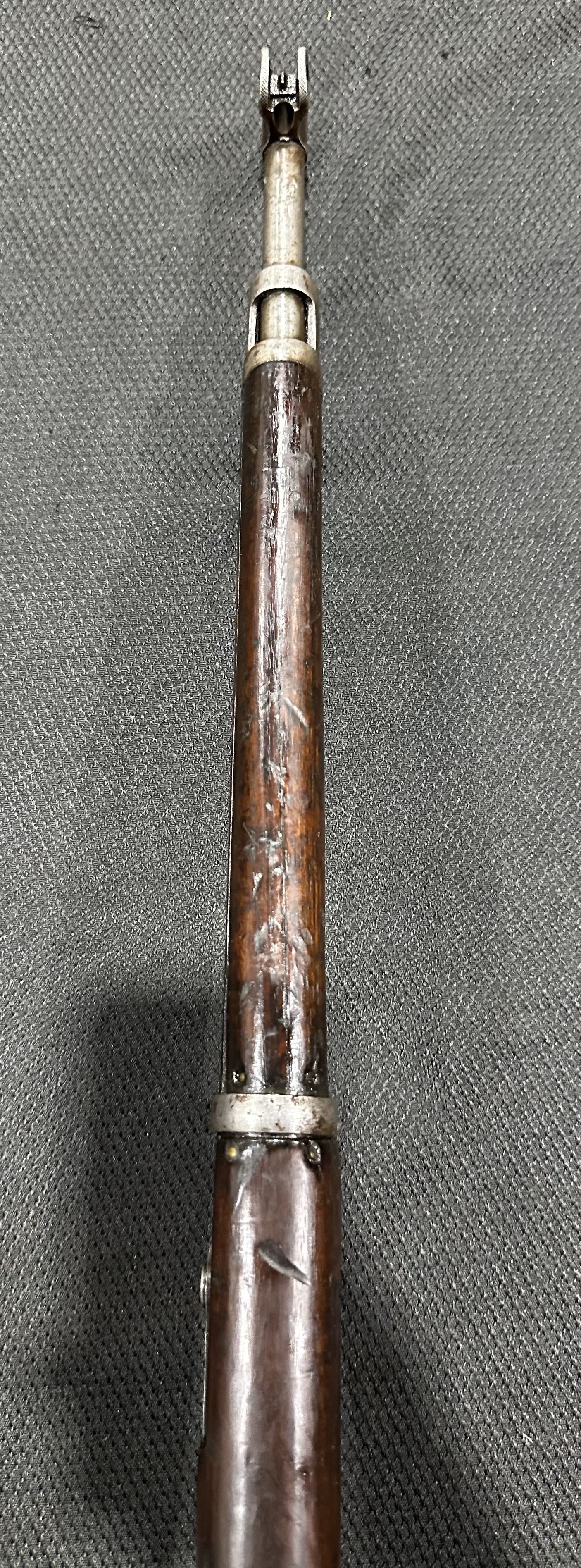 This rifle is complete and has passed a basic function test. The bore is in poor condition. The wood is in overall good condition, showing typical handling wear, including dings and scratches. Please note: there is a crack in the front upper handguard and a small crack in the stock, just forward of the bolt handle.
