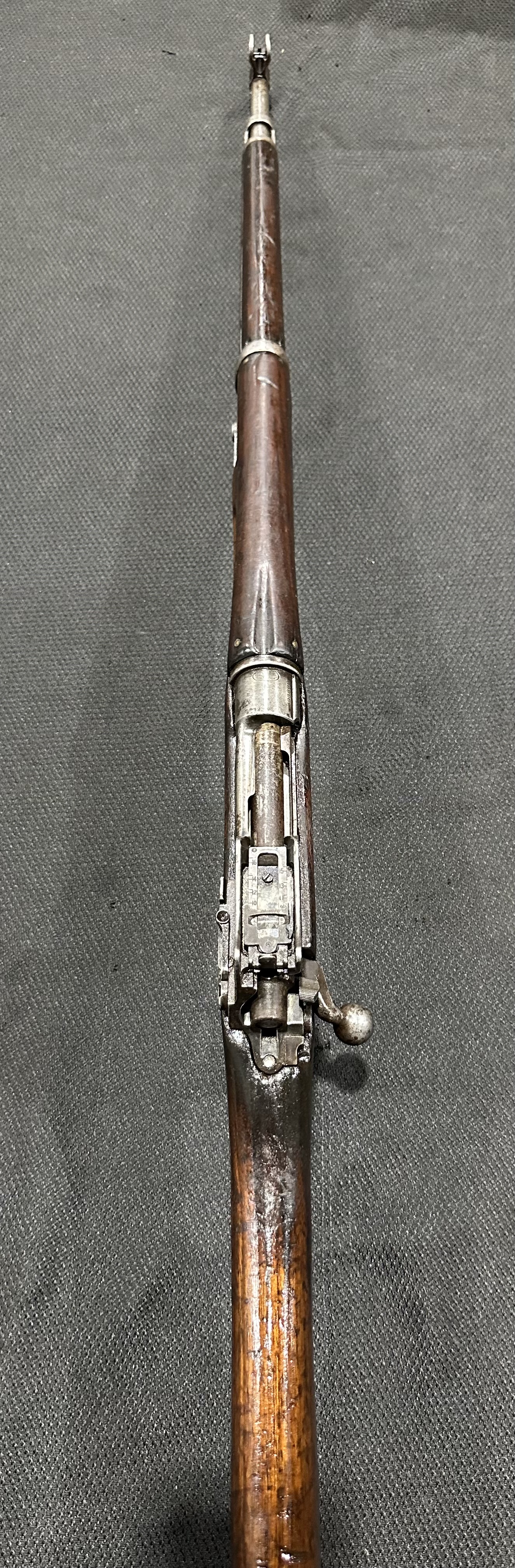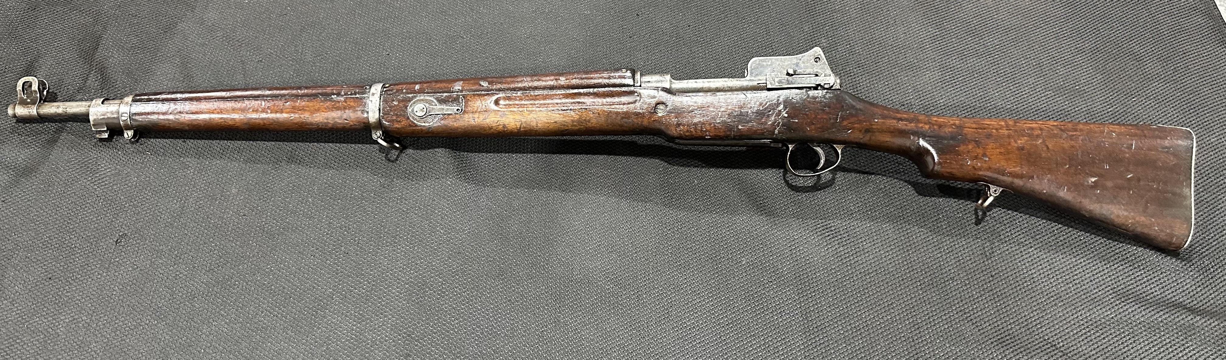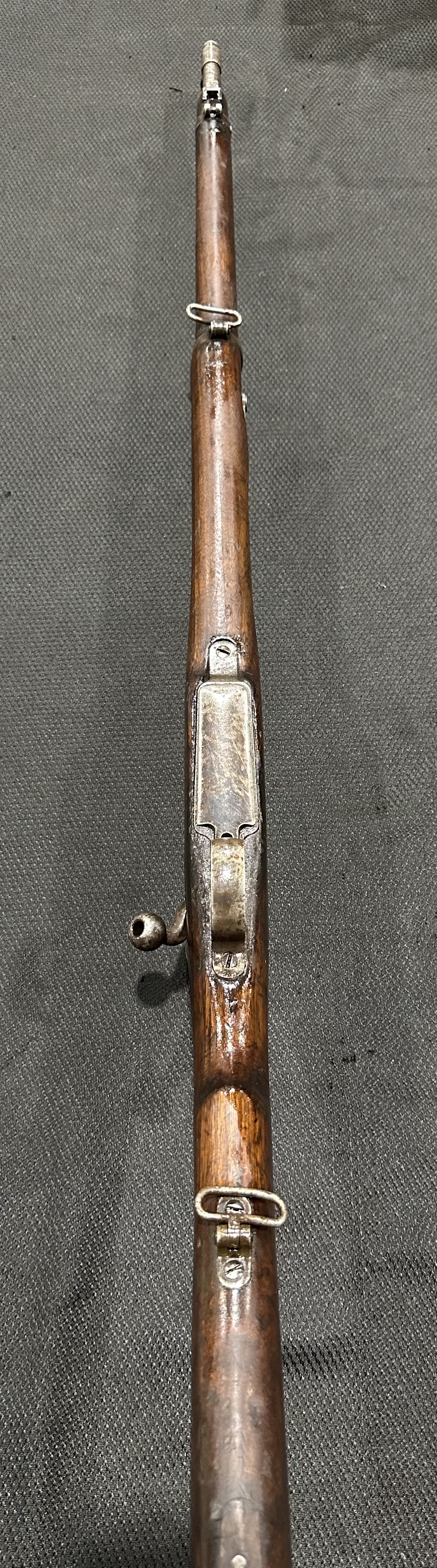 This rifle is complete and has passed a basic function test. The bore is in poor condition. The wood is in overall good condition, showing typical handling wear, including dings and scratches. Please note: there is a crack in the front upper handguard and a small crack in the stock, just forward of the bolt handle.
