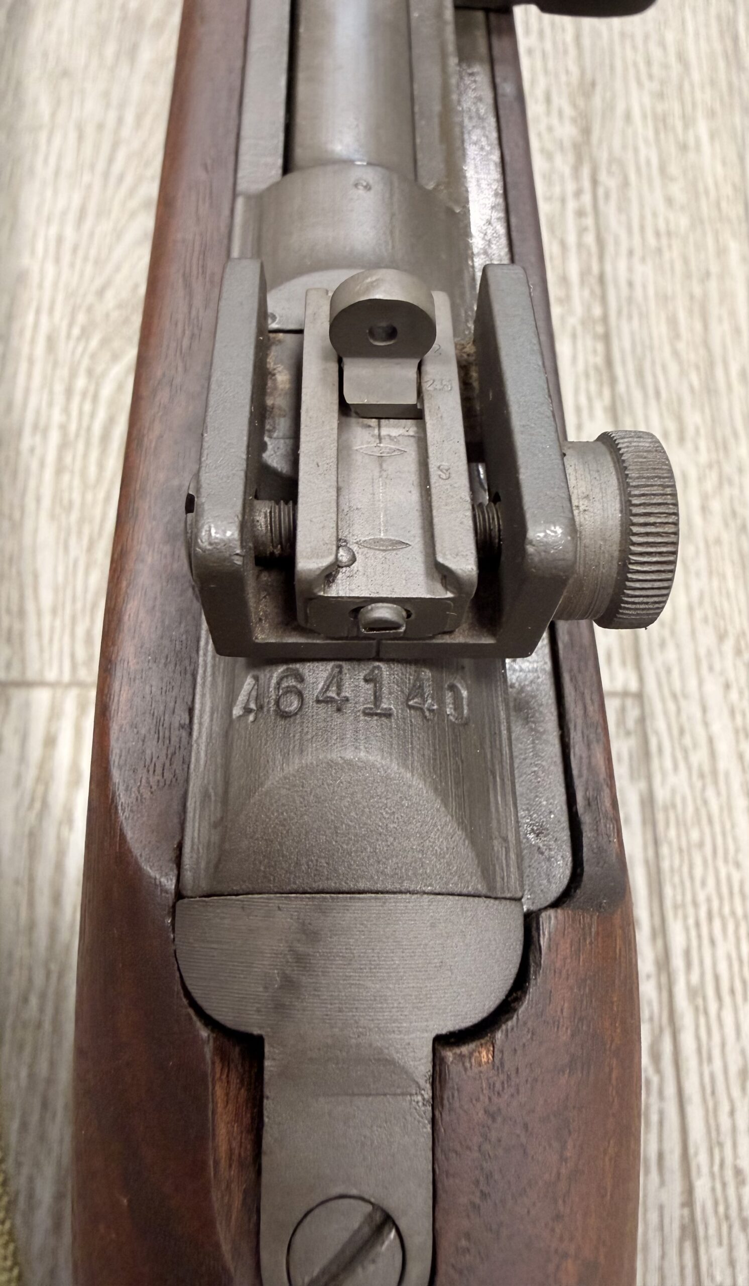 This carbine features a Type 2 rear sight and a Type 3 front barrel band.