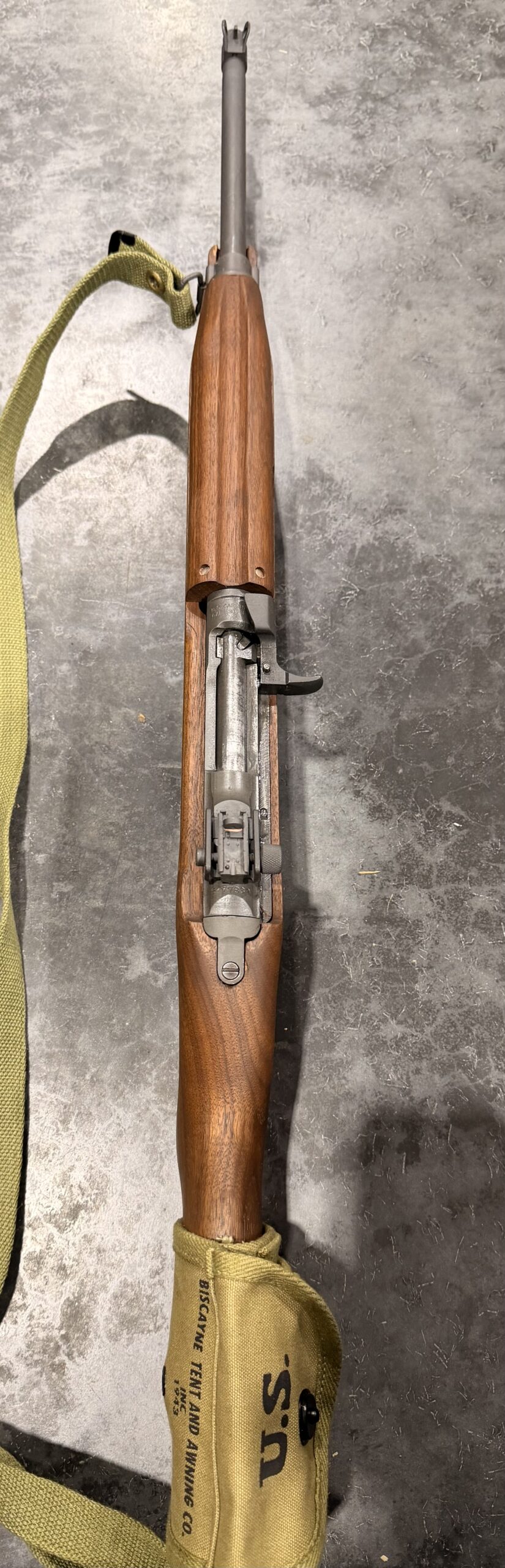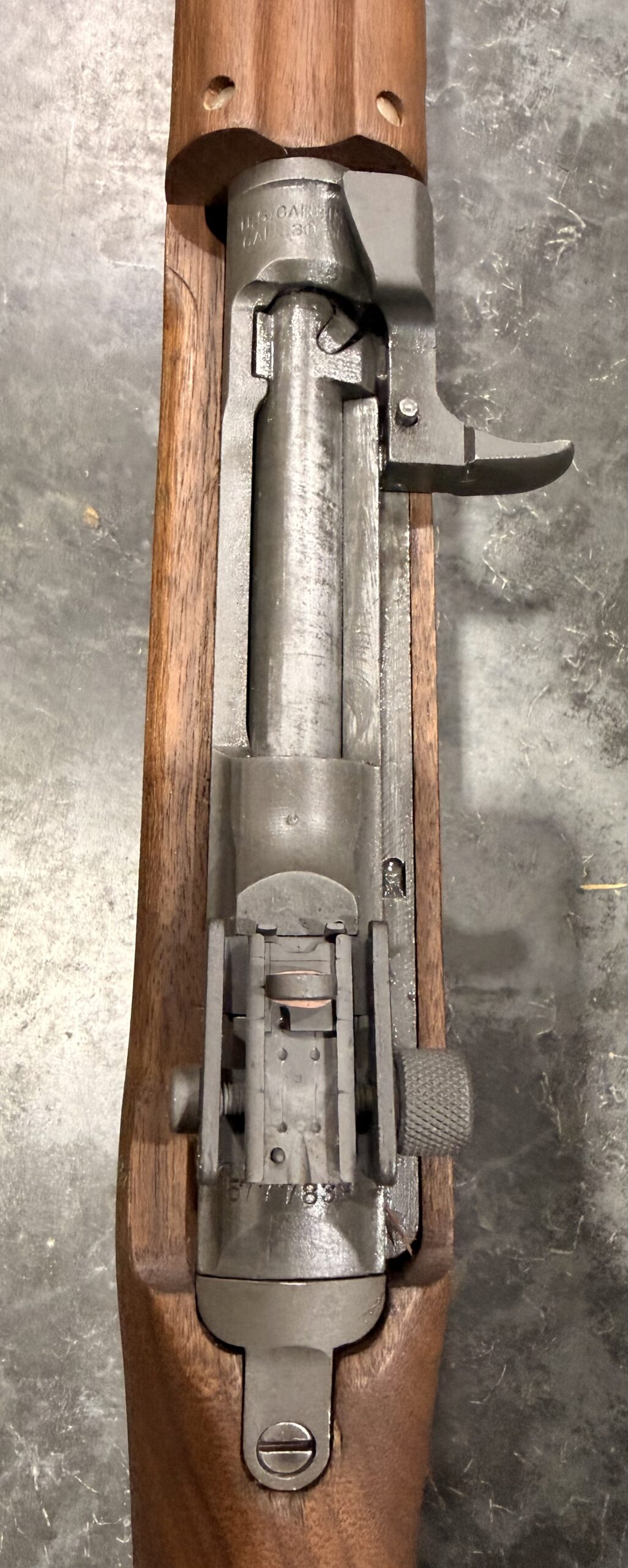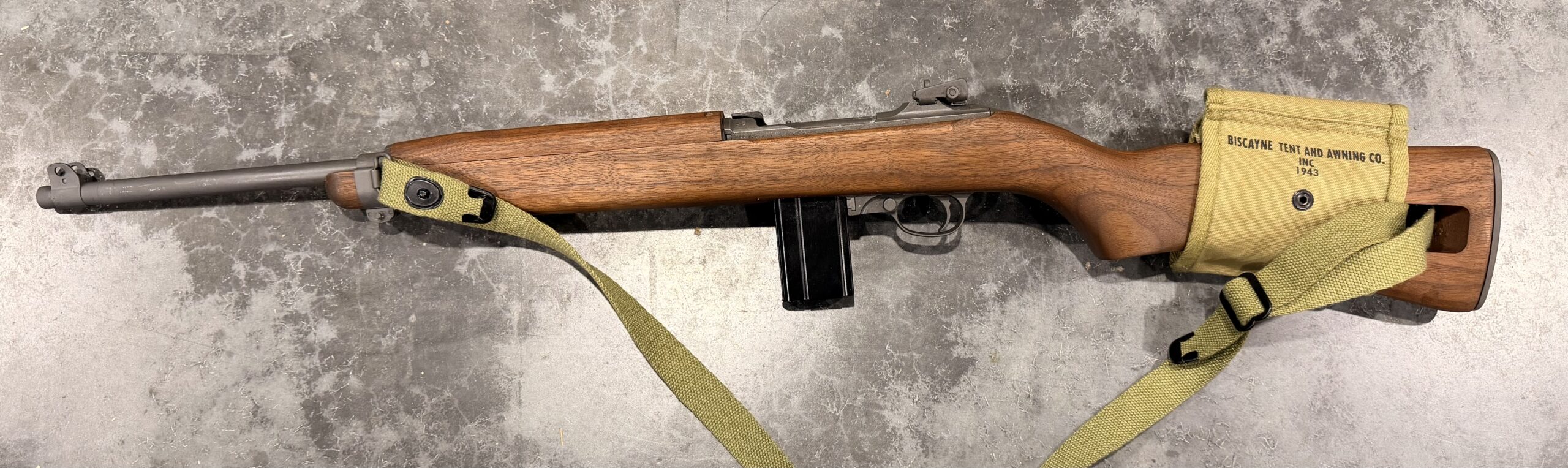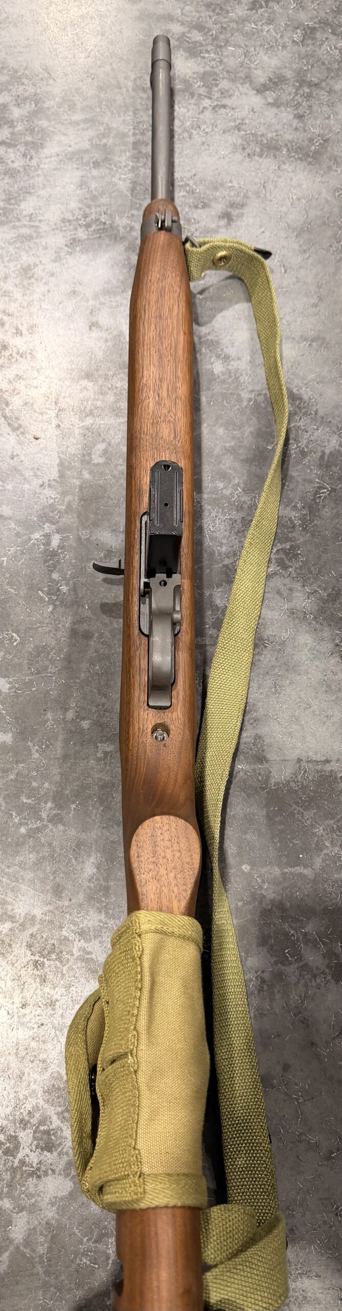 The carbine has been carefully restored by our master gunsmith. The carbine retains the original Dulite zinc-phosphate finish, as used during WWII. The stock is new production. The carbine has a very good bore — gauges at 1.0. Please note there are 2 small dents in the stock near the left rear of the upper handguard.