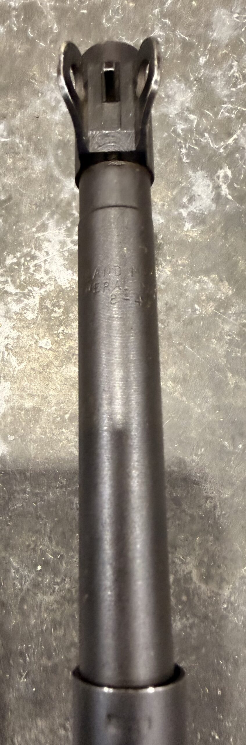 The bore gauges at 2.0 and is in excellent condition. The barrel is Inland-marked and 8-44 dated.