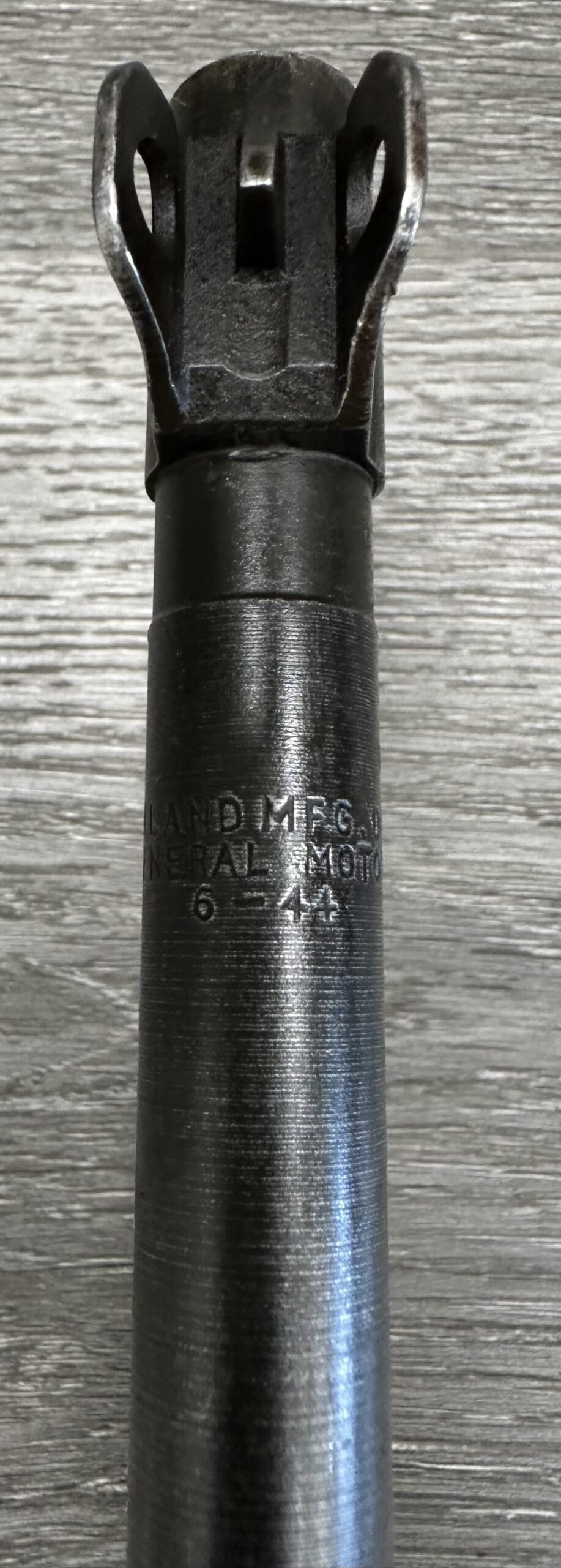 The stock is in very good overall shape. The bore gauges at 1.0 and remains in good condition. The barrel is Inland-marked, dated 6-44, and the carbine has a flip-style safety.