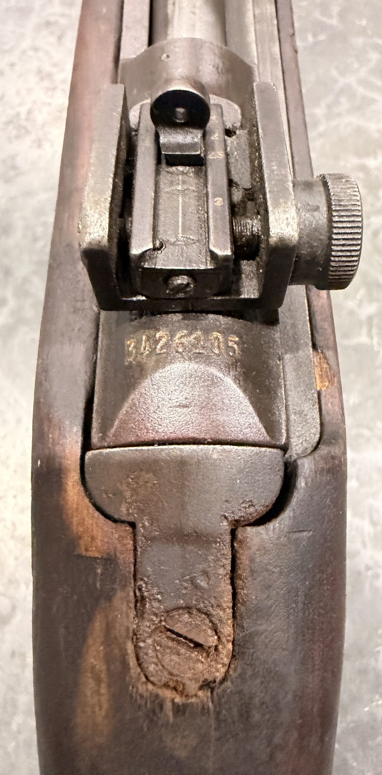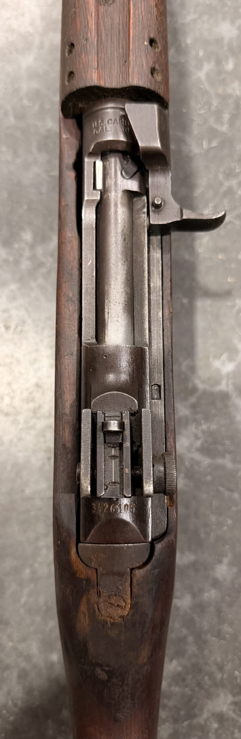 This carbine features a Type II rear sight, a Type III front barrel band. The receiver, barrel, and trigger group are in very good condition.