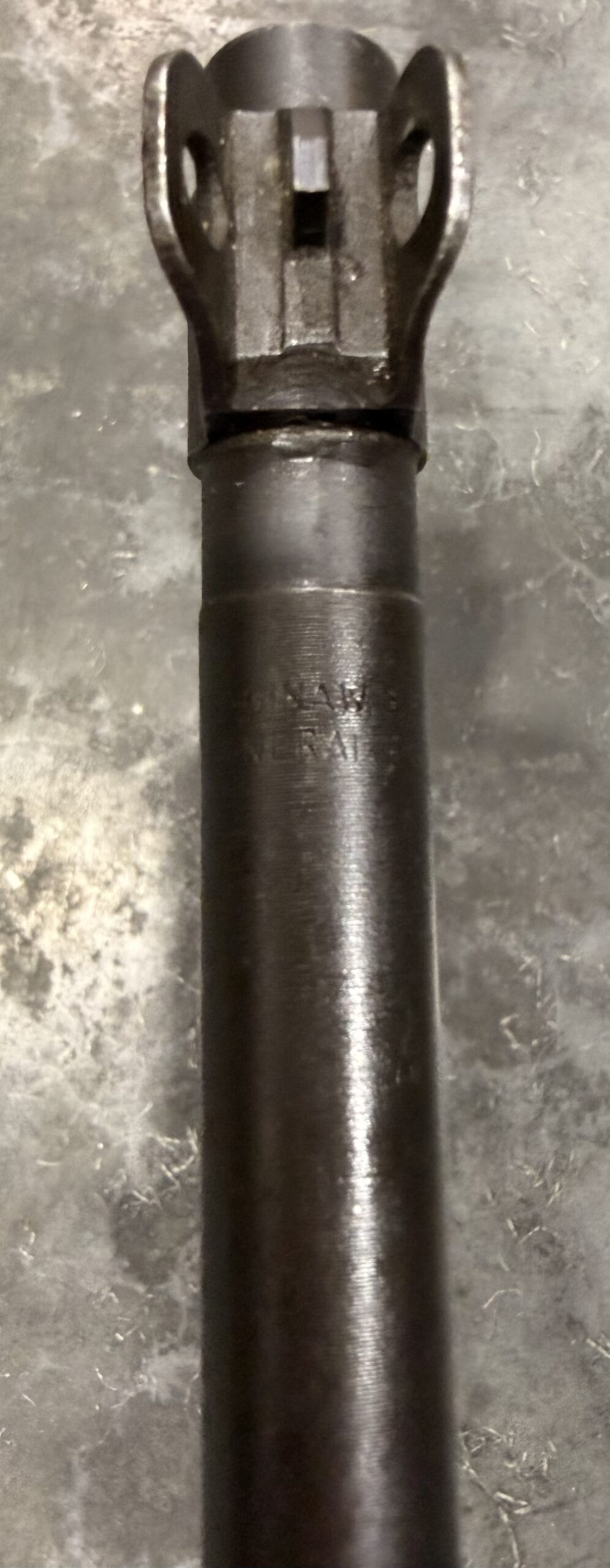 The bore gauges at 2.5 and remains in very good condition. The barrel is Saginaw-marked and undated.