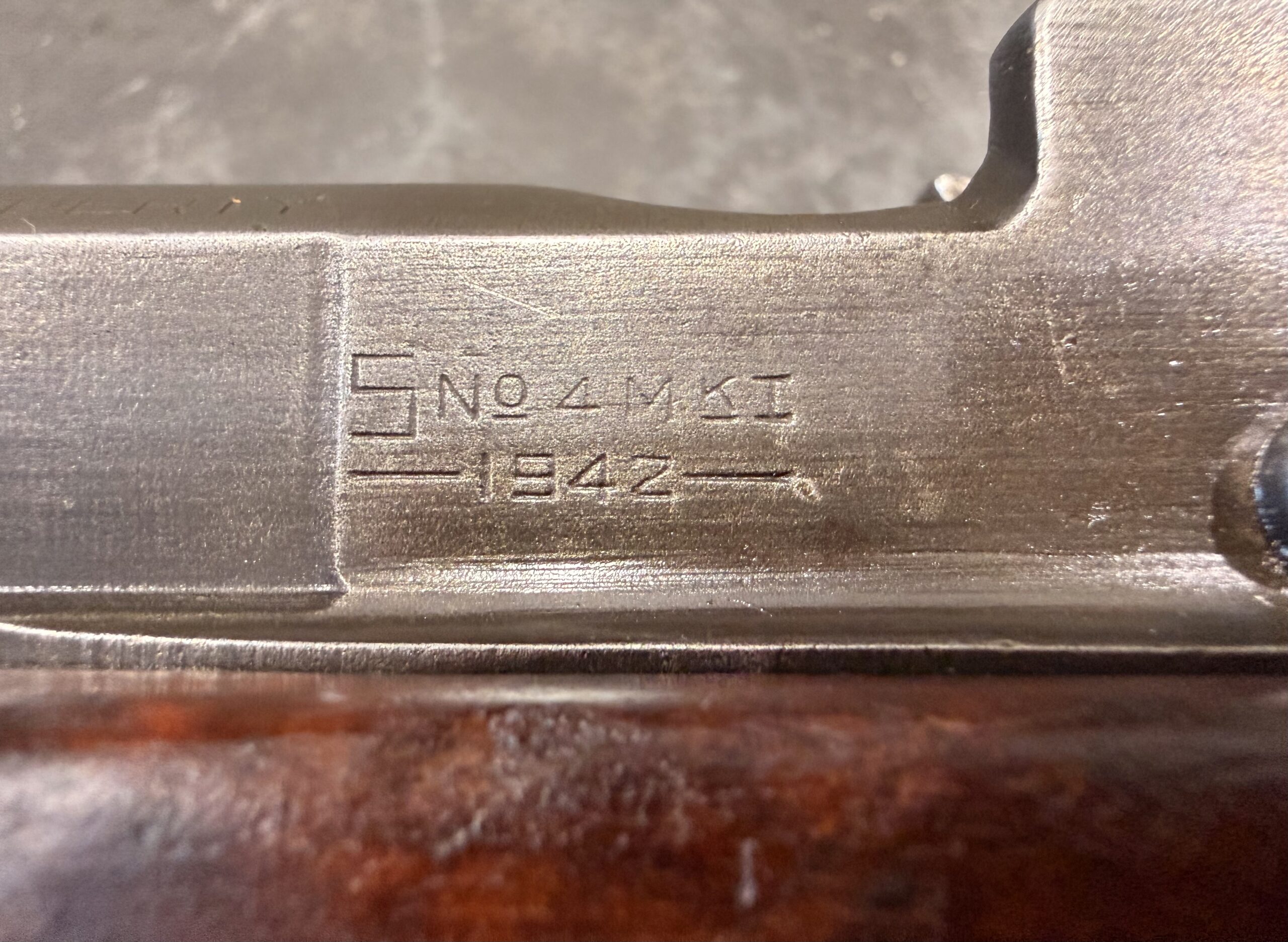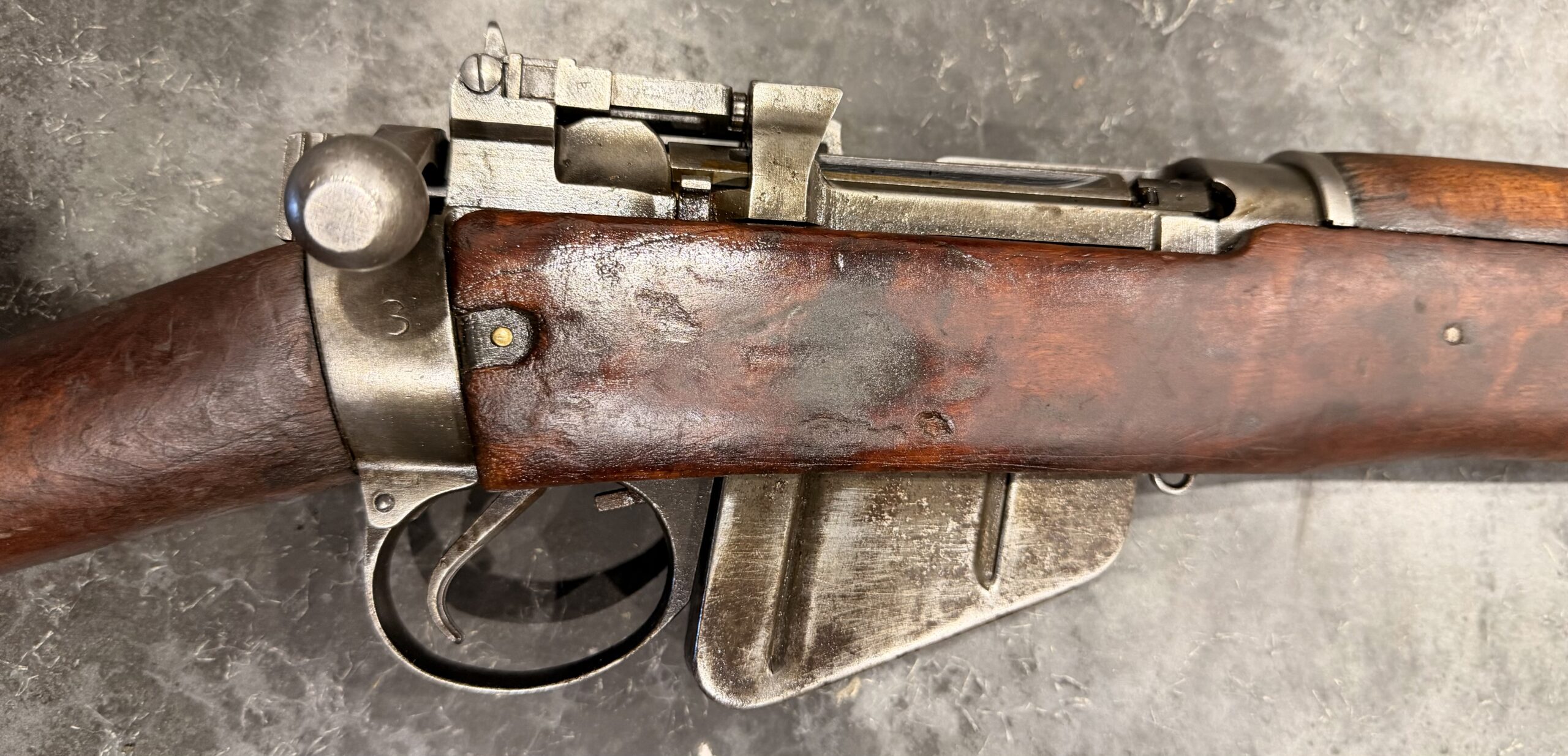 This Savage Enfield No. 4 Mk I has an early serial number and is in very good overall condition. The bore is in good condition but requires some additional cleaning. The metal finish remains in good shape.