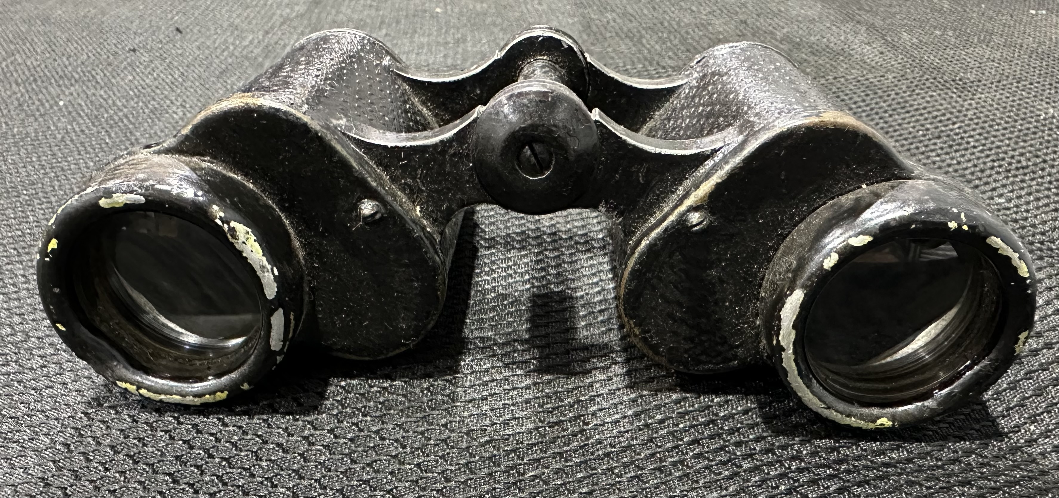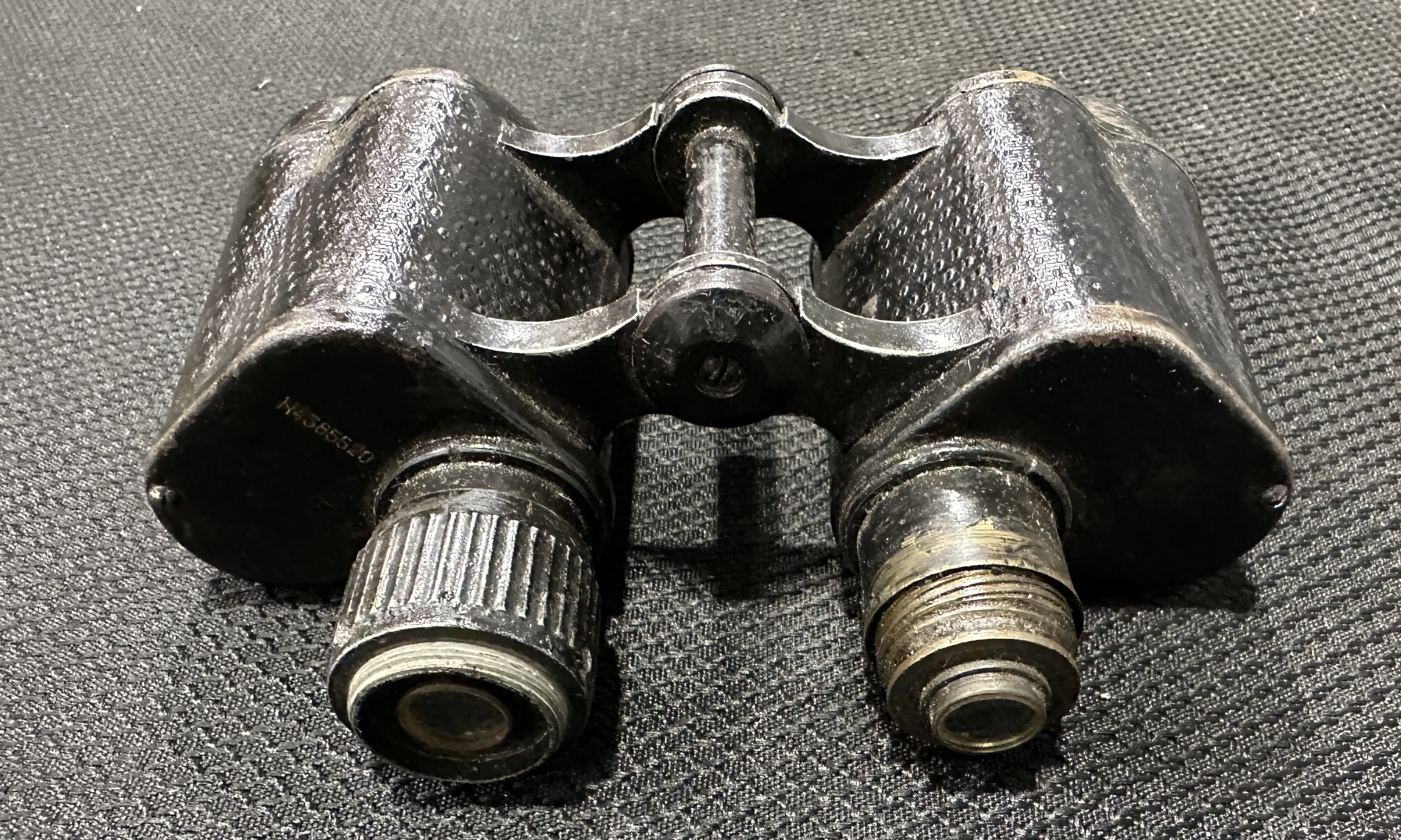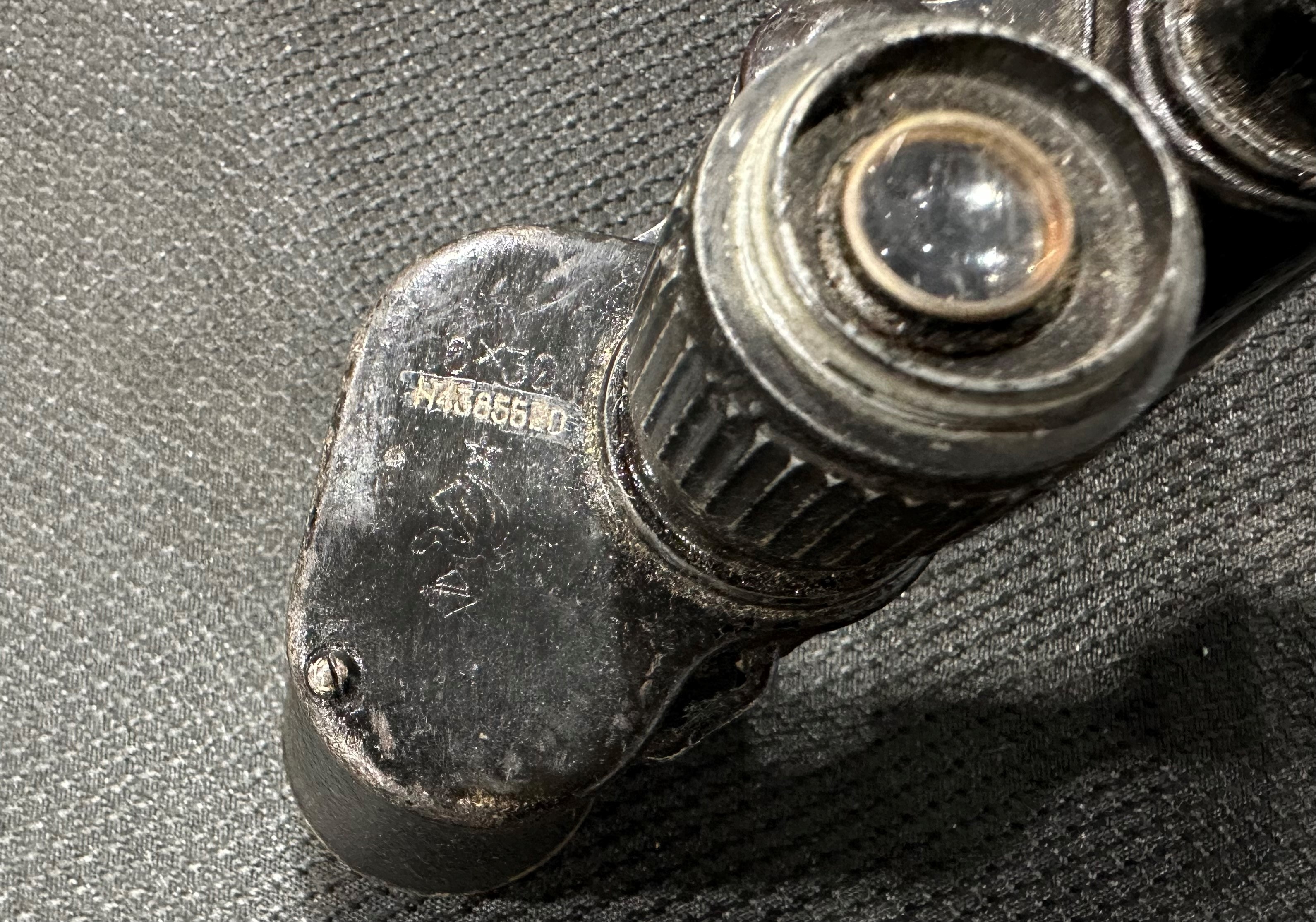 These Soviet 6x30 binoculars are slightly hazy but still provide visibility. The right eye adjustment cover is missing.