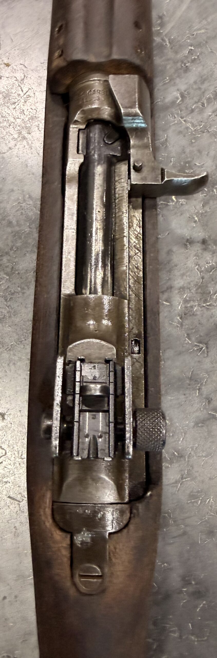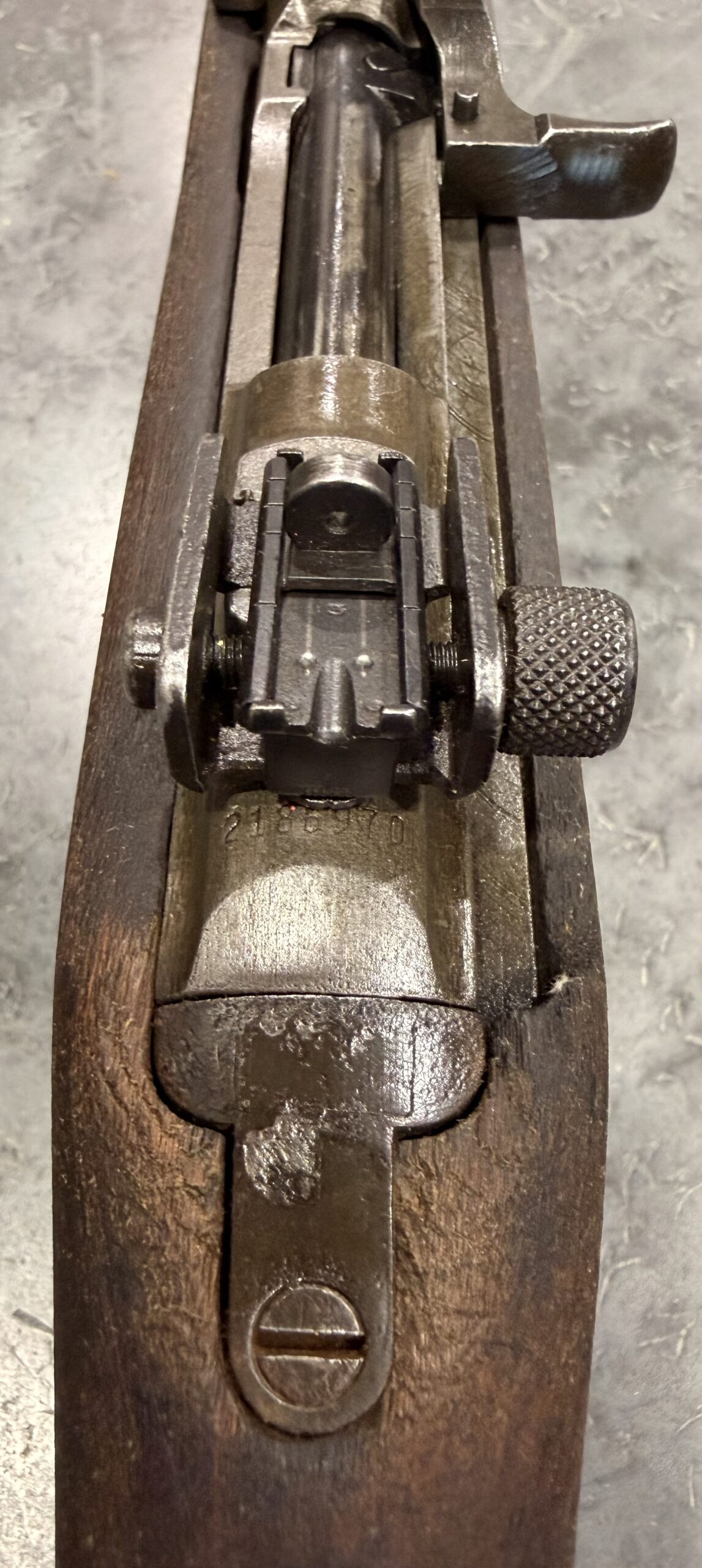 This carbine features a Type III rear sight, a Type III front barrel band. The receiver, barrel, and trigger group are in very good condition.