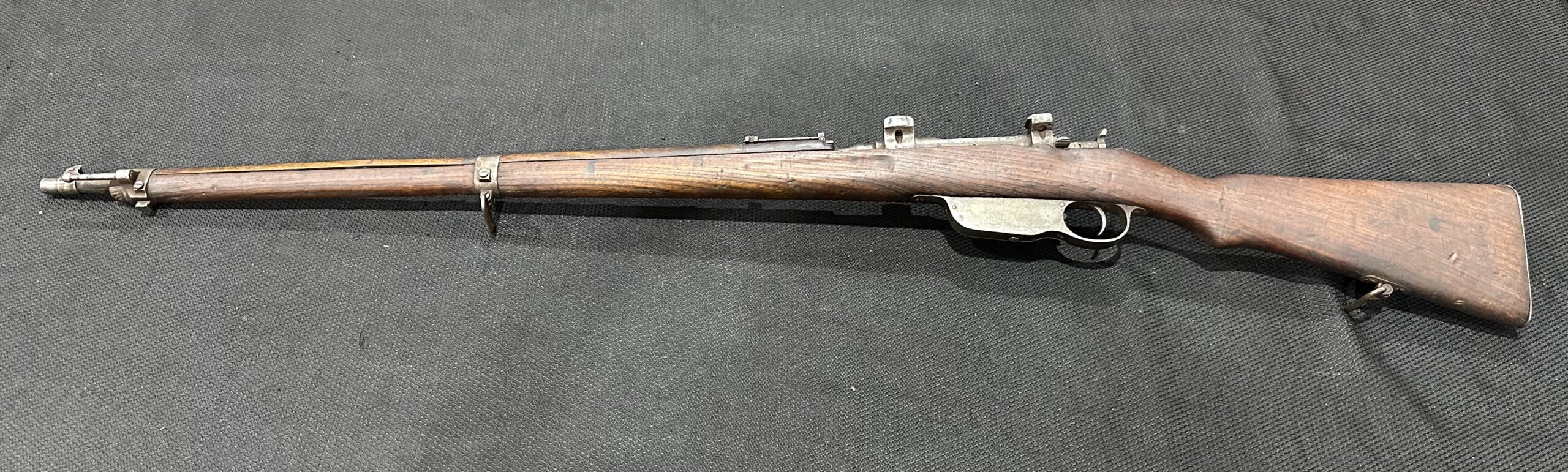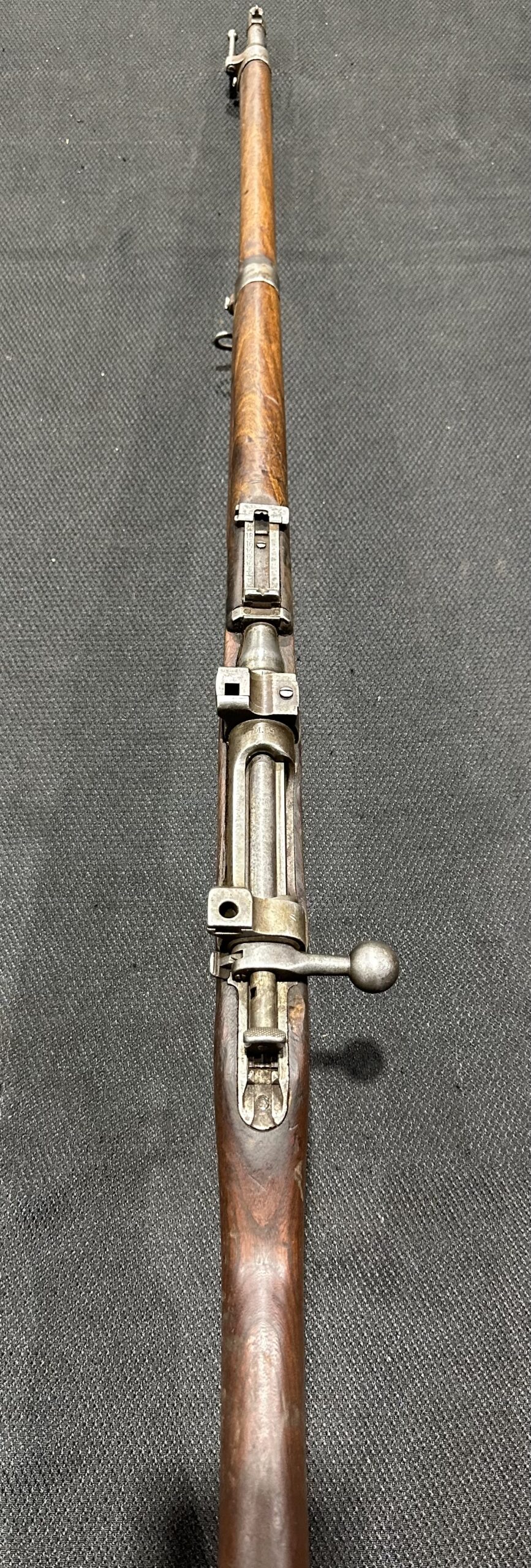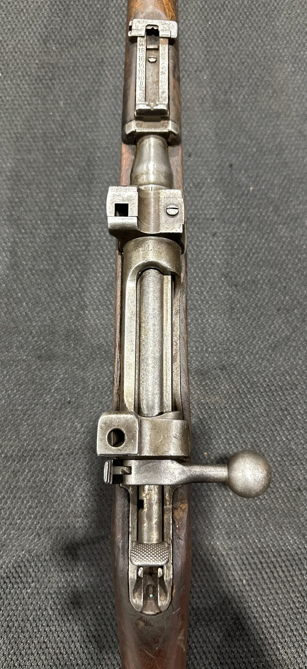 Original M.95 Sniper Rifle, Serial Number 4602J, Chambered in 8x50R. This rifle is in good condition, showing typical wear consistent with those sourced from Ethiopia. The bore is in good condition with strong rifling. The action is smooth and 100% functional, and the scope mount bases remain intact. These sniper rifles are extremely rare, with only one available!