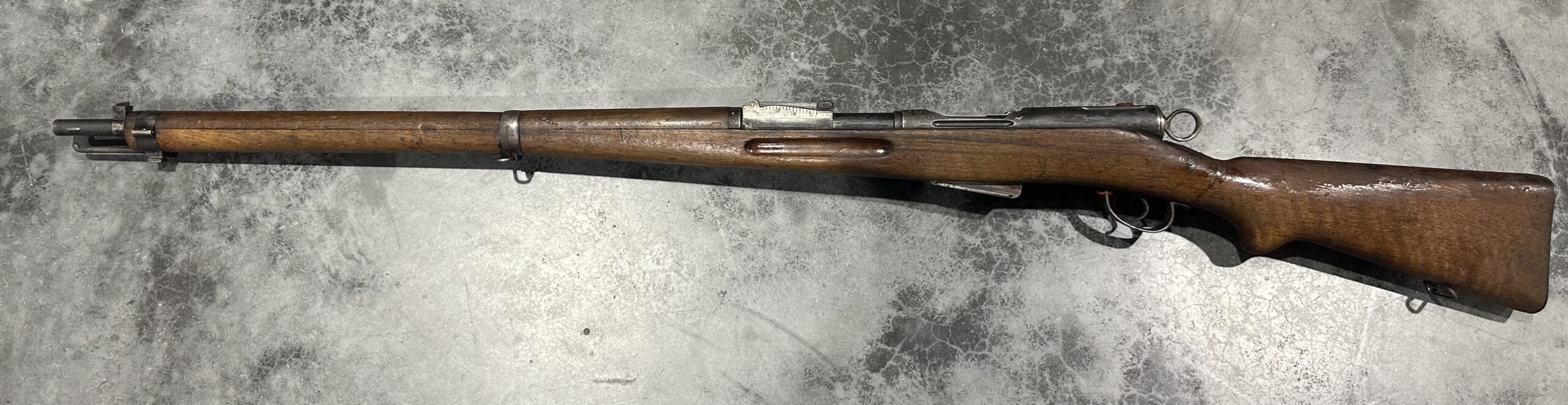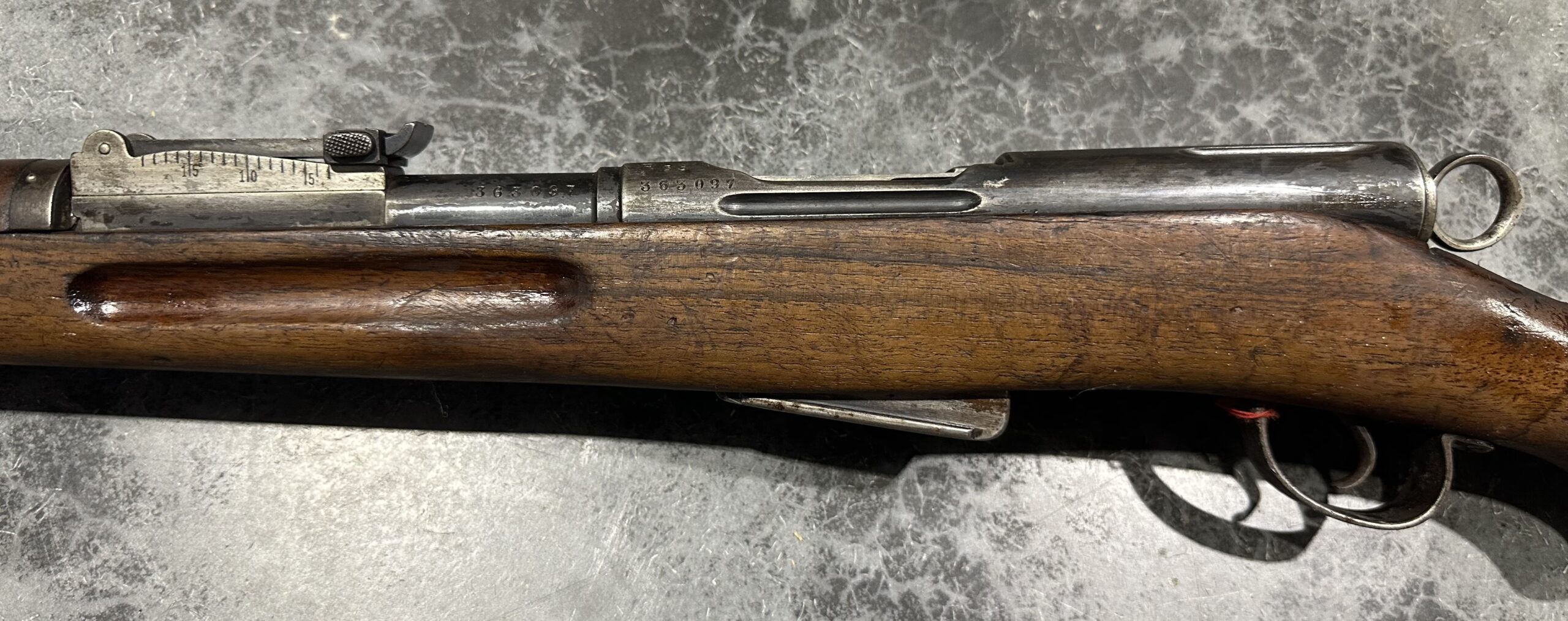 We have just received a beautiful Swiss G1911 Rifle, Serial Number 363097. This rifle features all matching serial numbers and is 100% functional. It remains in good original condition, showing some wear to the original finish. The bore is in very good condition, with strong lands and grooves. Please refer to the photos for full details.