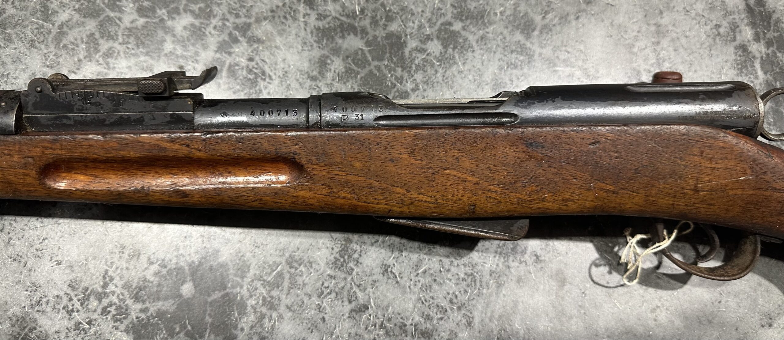 We have just received a beautiful Swiss G1911 Rifle, Serial Number 400713. This rifle features all matching serial numbers and is 100% functional. It remains in good original condition, showing some wear to the original finish. The bore is in very good condition, with strong lands and grooves. Please refer to the photos for full details.