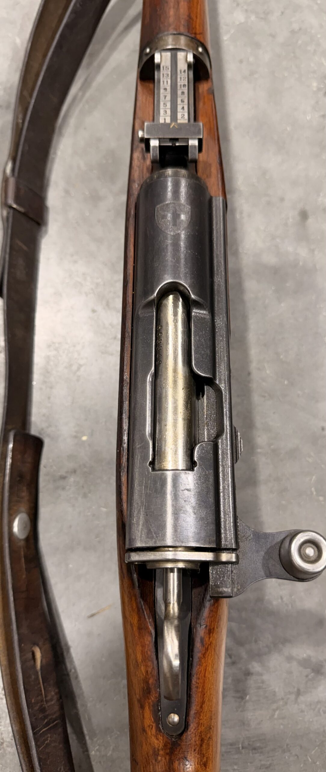 We just received a beautiful Swiss K31 Carbine, Serial Number 668849. This carbine has matching serial numbers. It is 100% functional and in good original condition, with some wear from typical use. The bore is in excellent condition as well with strong lands and grooves. Please see photos for all details.