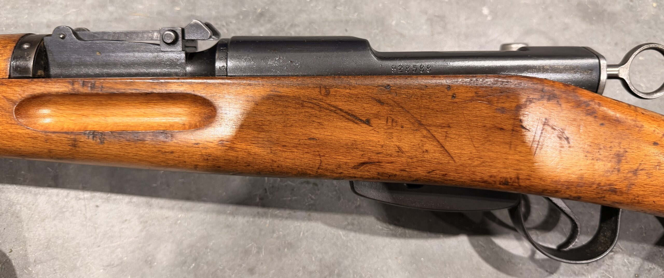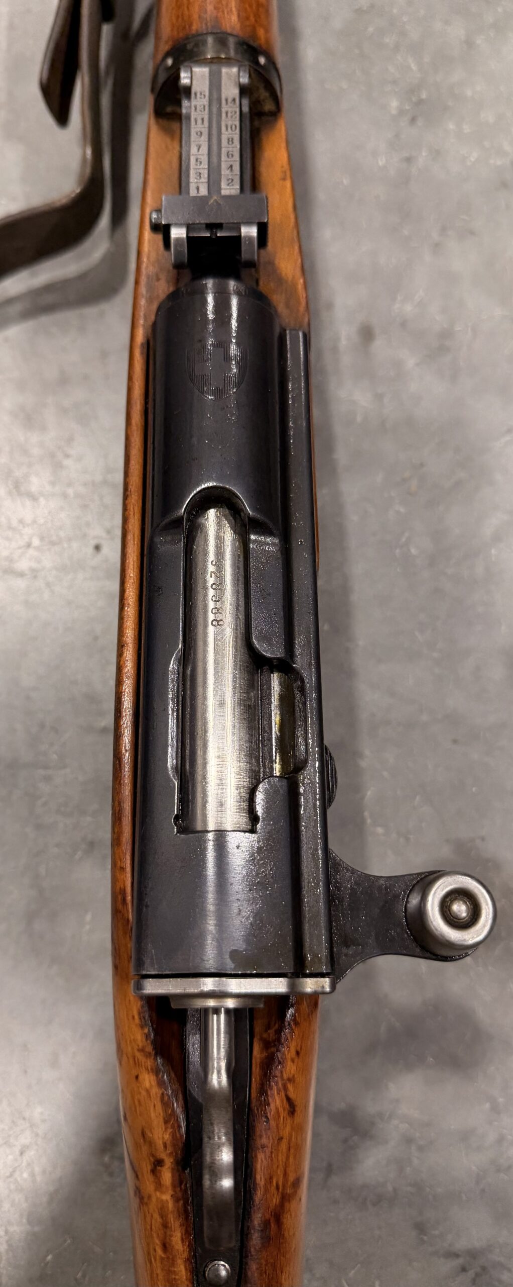 We just received a beautiful Swiss K31 Carbine, Serial Number 928588. This carbine has matching serial numbers. It is 100% functional and in good original condition, with some wear from typical use. The bore is in a very good condition as well with strong lands and grooves. Please see photos for all details.