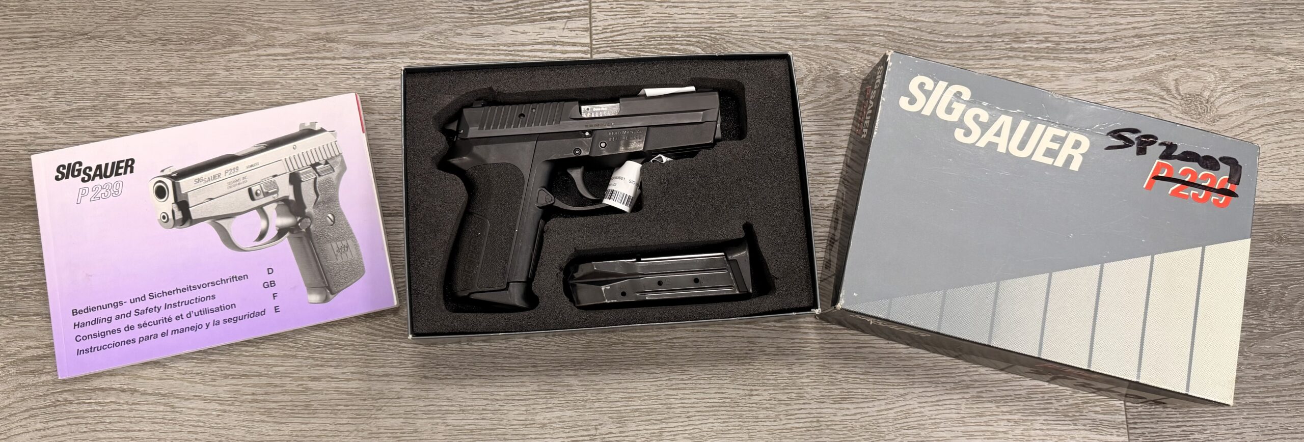 Comes with two 15-round magazines. This is an exact pistol you will receive. Comes in a box for P239 with P239 manual.