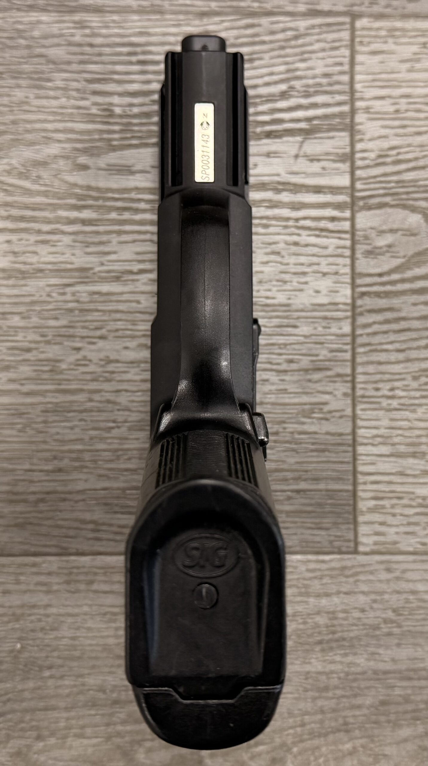 We’ve just received a Swiss Lucerne Police-Marked SIG Sauer SP2009, 9mm Parabellum / 9x19mm, Serial Number SP0031143.