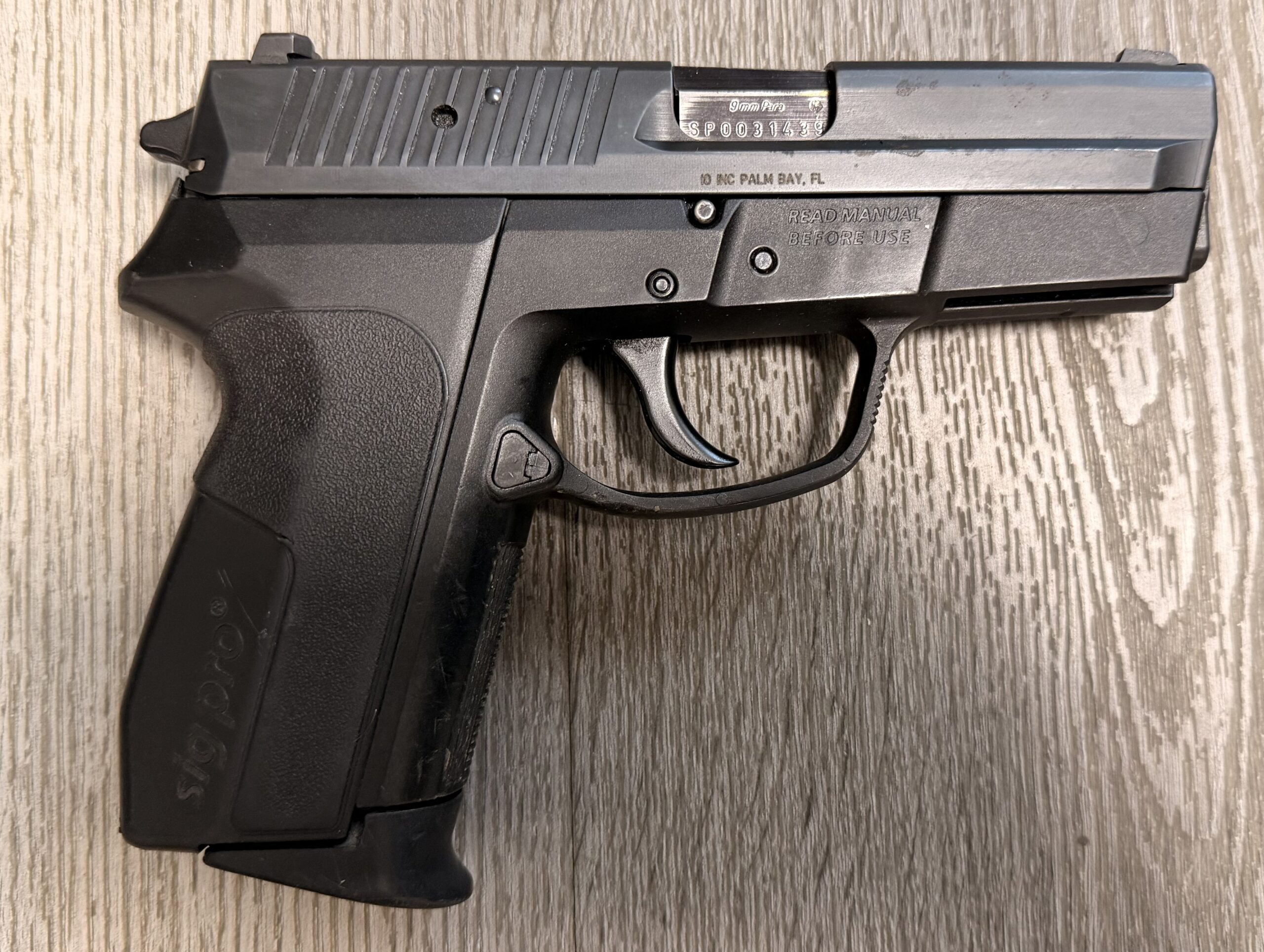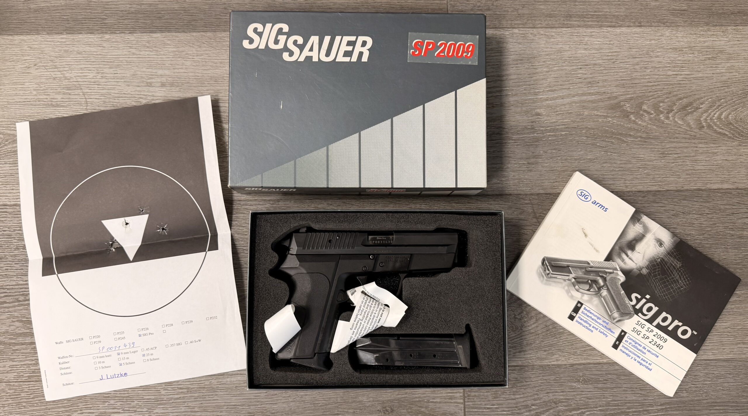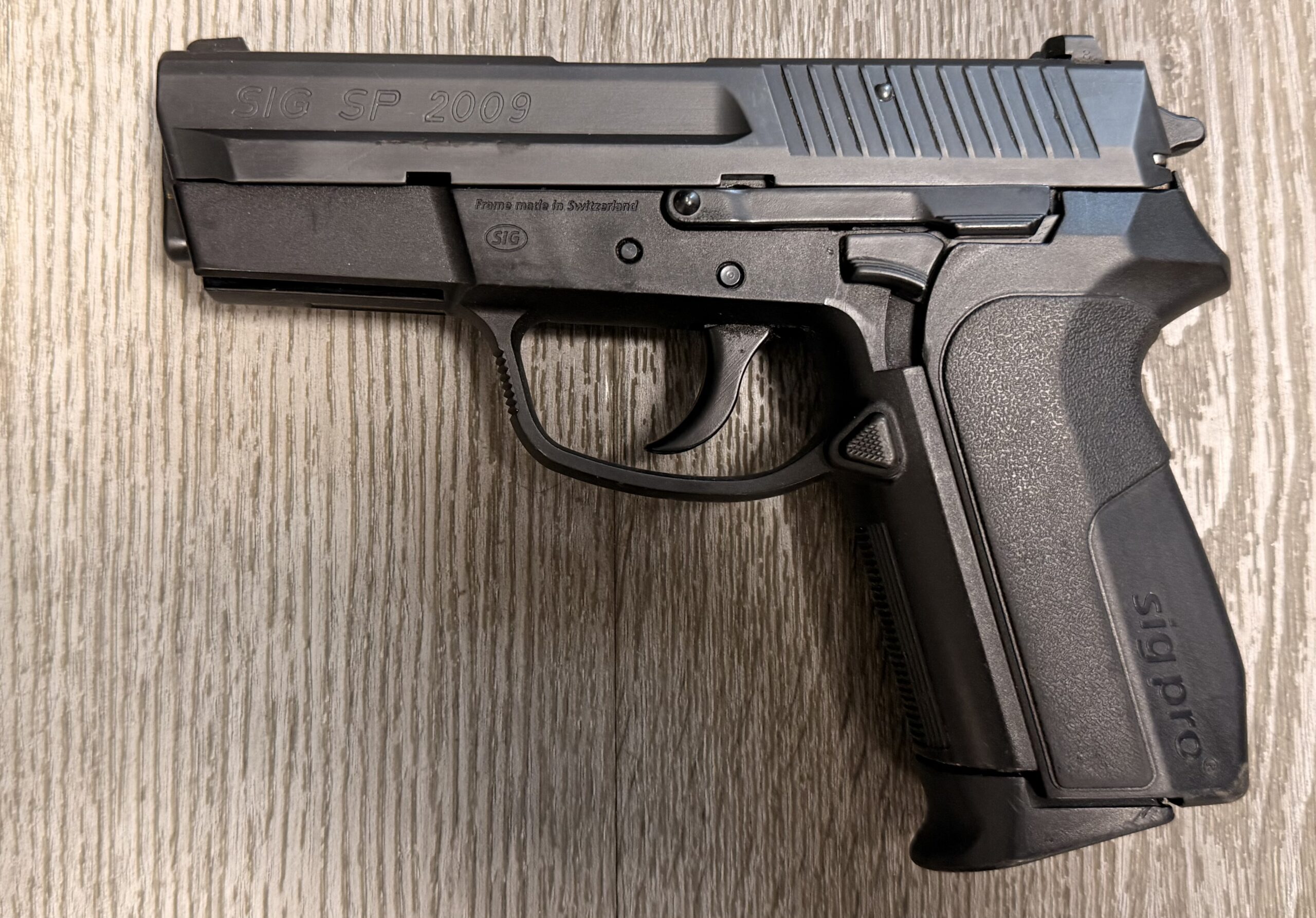 We’ve just received a Swiss Lucerne Police-Marked SIG Sauer SP2009, 9mm Parabellum / 9x19mm, Serial Number SP0031439.