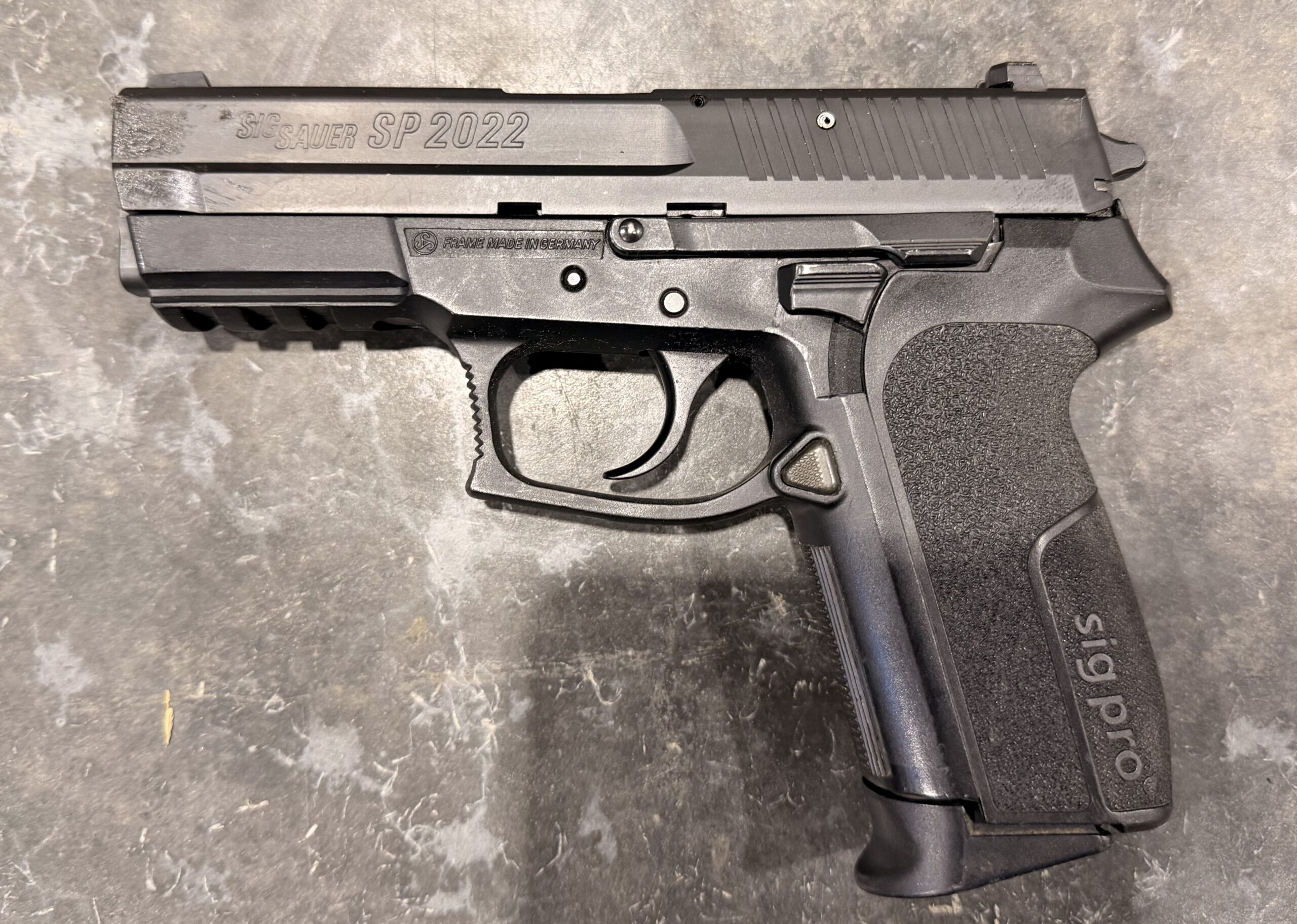 We’ve just received a Swiss Lucerne Police-marked SIG Sauer SP2022, Serial Number SP0246588.