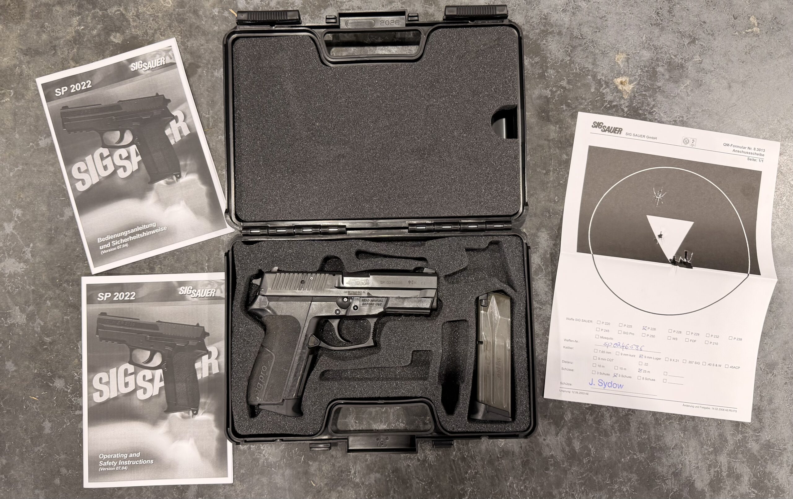 Comes with two 15-round magazines, manual in English and German, test target. Also includes the original case.