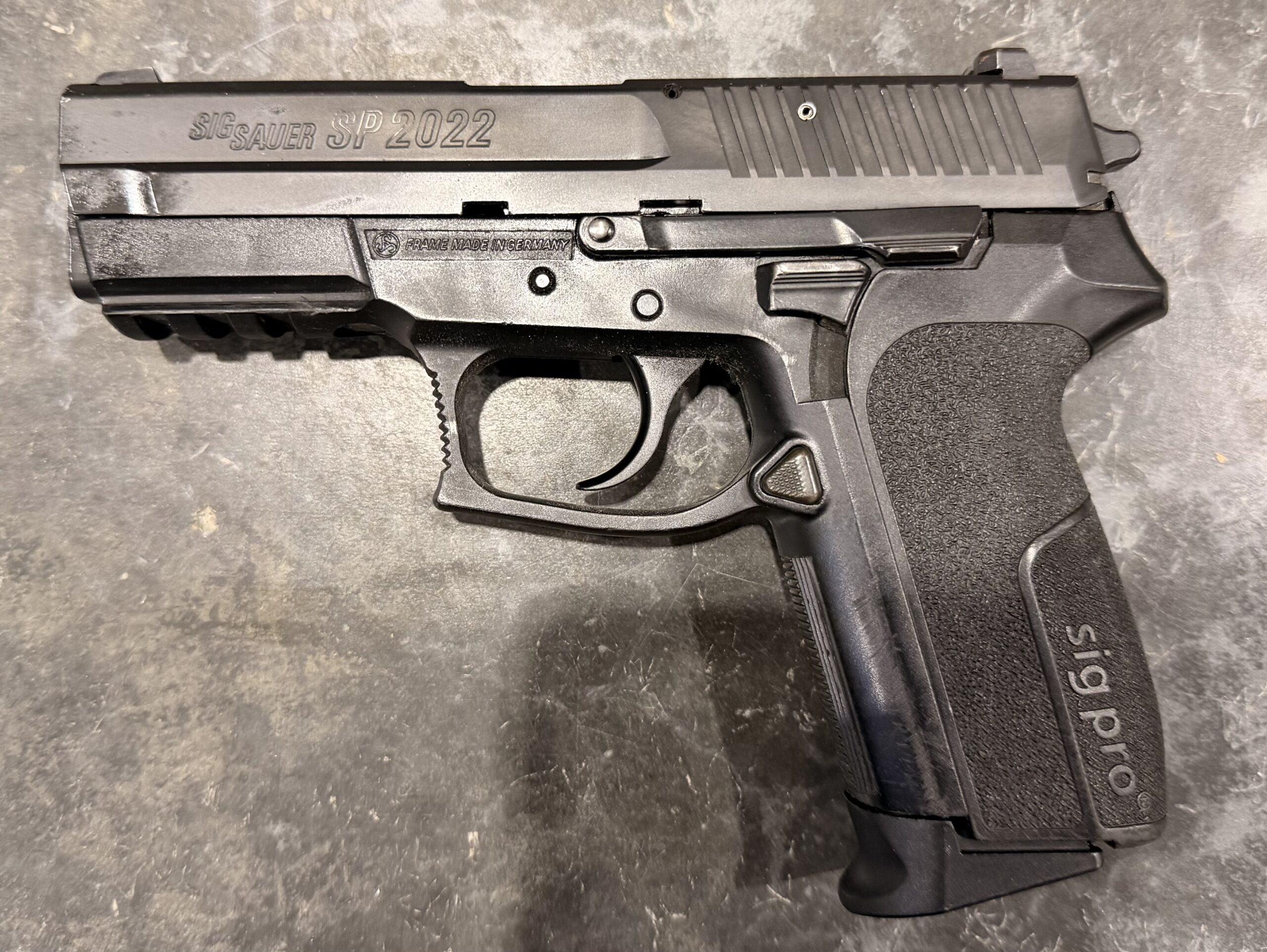 We’ve just received a Swiss Lucerne Police-marked SIG Sauer SP2022, Serial Number SP0246596.