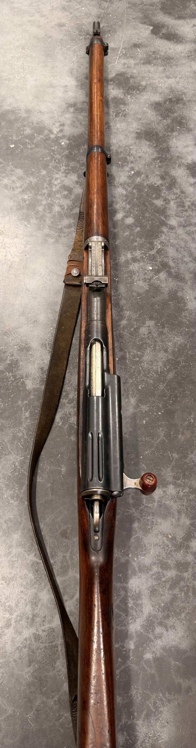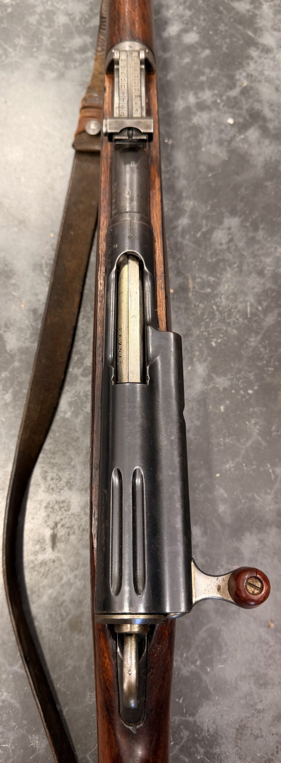 This rifle features matching numbers on the receiver, bolt and magazine. It is complete, fully functional, and in good condition. The bore is in excellent condition, with strong grooves and a clean overall appearance.