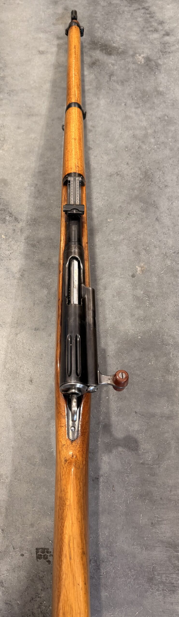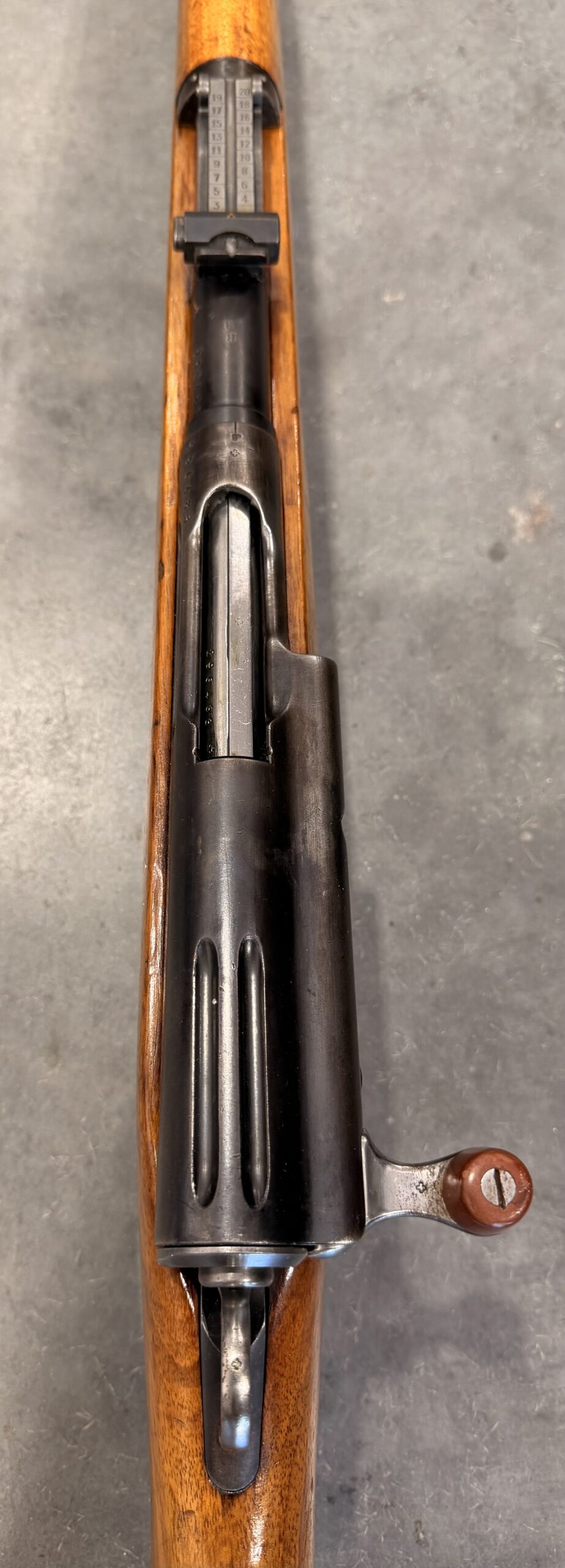 This rifle features matching numbers on the receiver and bolt but the magazine is not matching. It is complete, fully functional, and in good condition. The bore is in very good condition, with strong grooves and a clean overall appearance. Please note there is a small crack on the right side of the stock near the receiver.