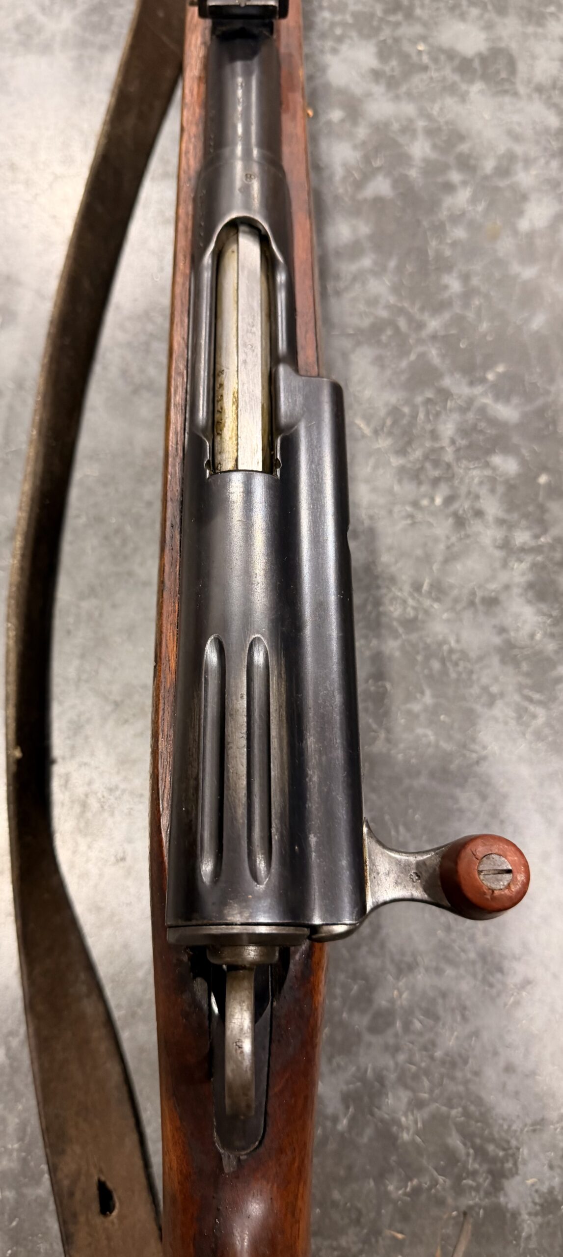 This rifle features matching numbers on the receiver, bolt and magazine. It is complete, fully functional, and in good condition. The bore is in very good condition, with strong grooves and a clean overall appearance. Please note that the charging handle is chipped and damaged.