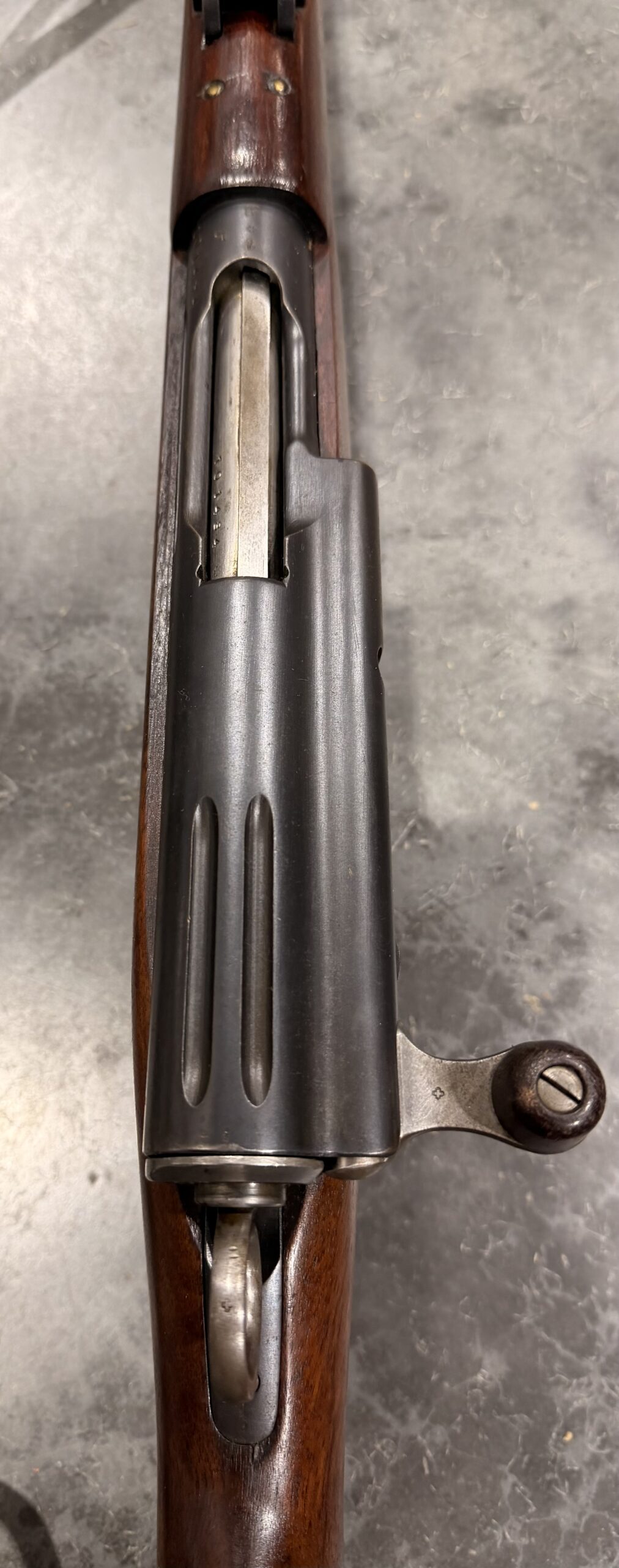 This carbine features matching numbers on the receiver and bolt, but the magazine is not matching. It is complete, fully functional, and in good condition. The bore is in excellent condition, with strong rifling and a clean overall appearance. The finish is excellent.