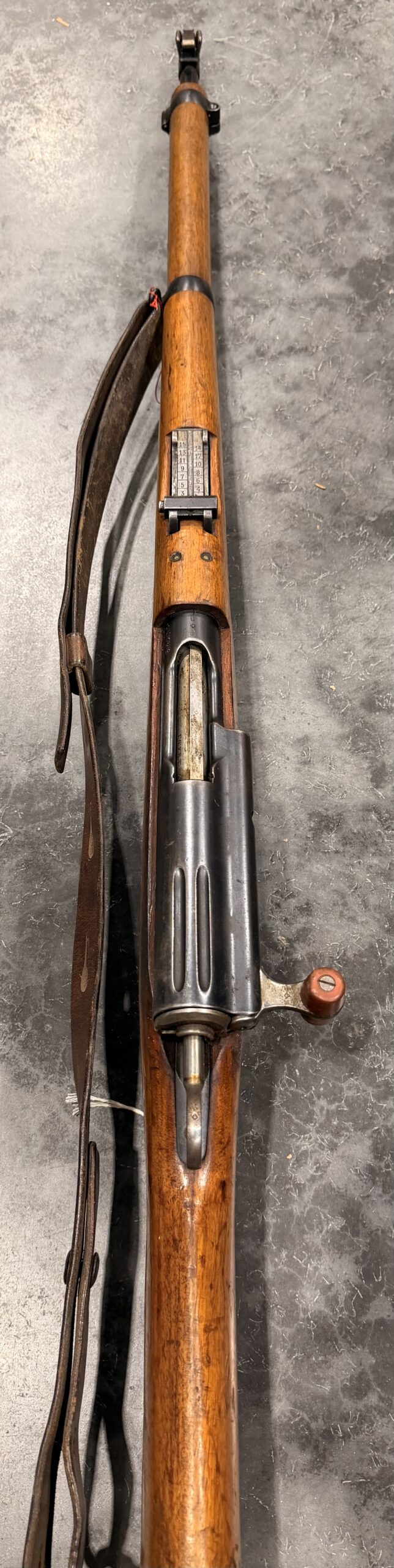 This carbine features matching numbers on the receiver, bolt and magazine. It is complete, fully functional, and in good condition. The bore is in very good condition, with strong rifling and a clean overall appearance.