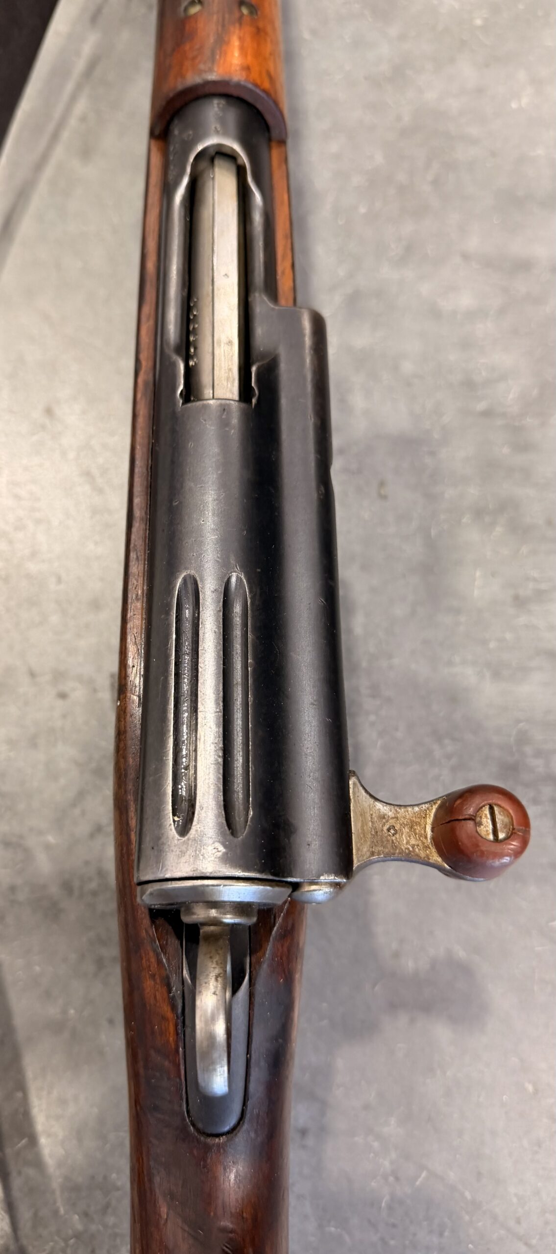 This carbine features matching numbers on the receiver, bolt and magazine. It is complete, fully functional, and in very good condition. The bore is in very good condition, with strong rifling and a clean overall appearance. Please note that the charging handle is cracked.