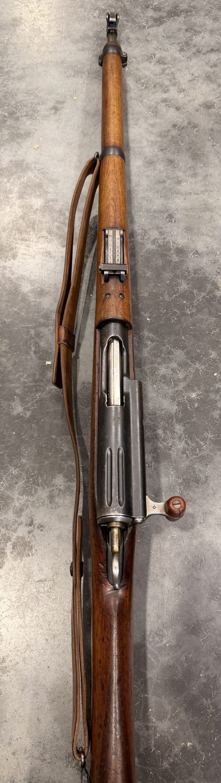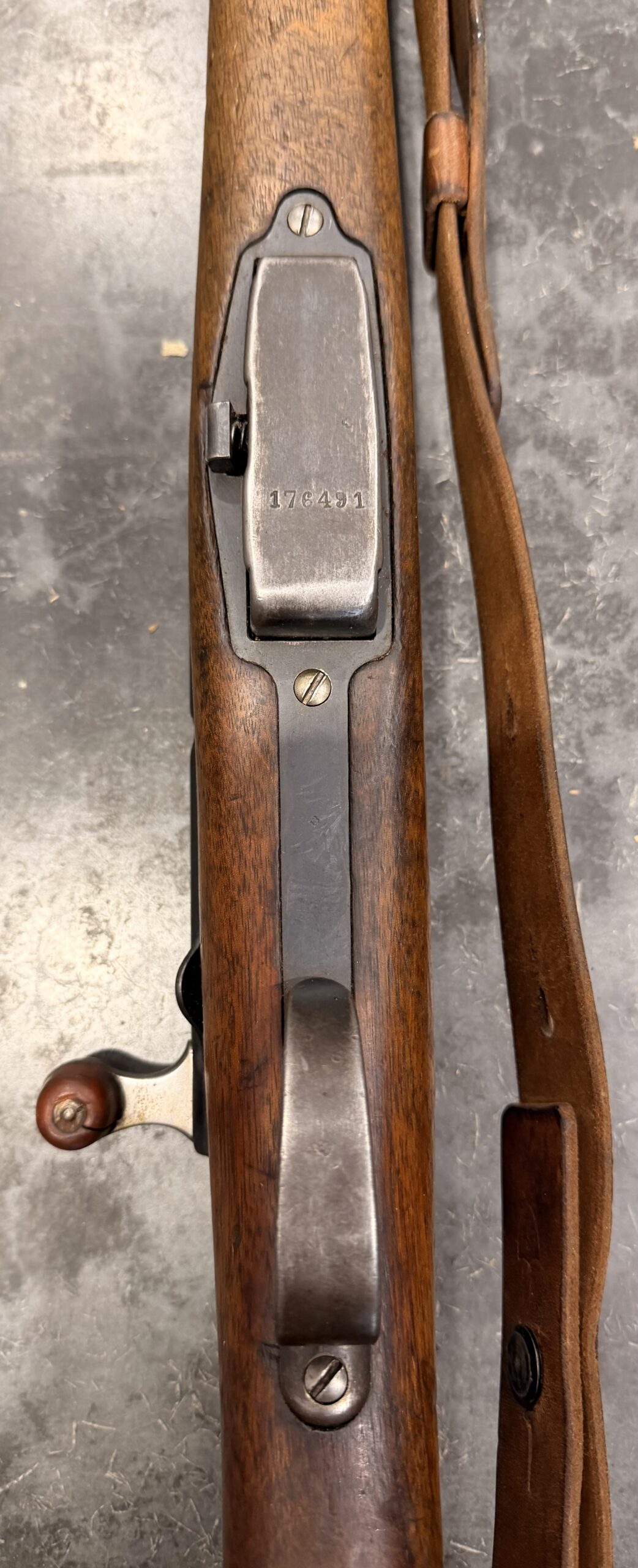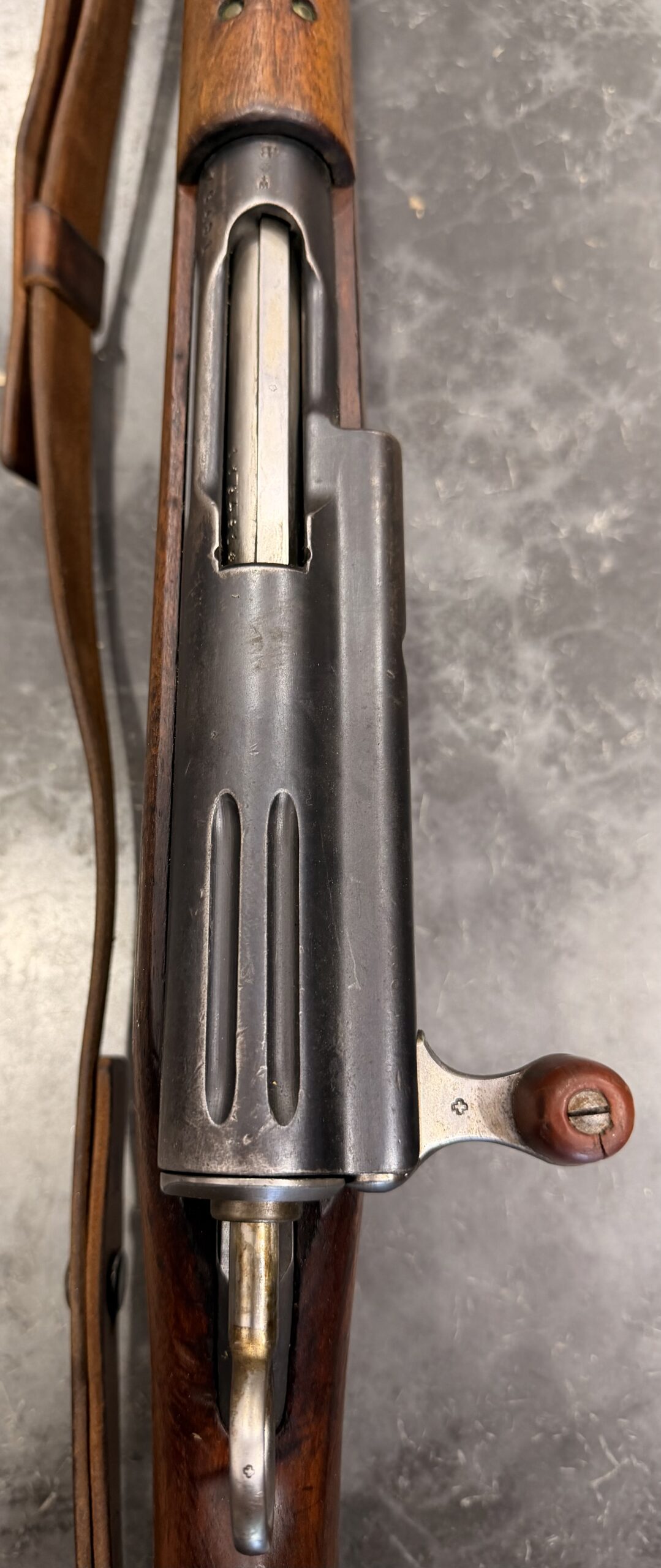 This carbine features matching numbers on the receiver, bolt and magazine. It is complete, fully functional, and in good condition. The bore is in very good condition, with strong rifling and a clean overall appearance. Please note that there is a crack at the charging handle.