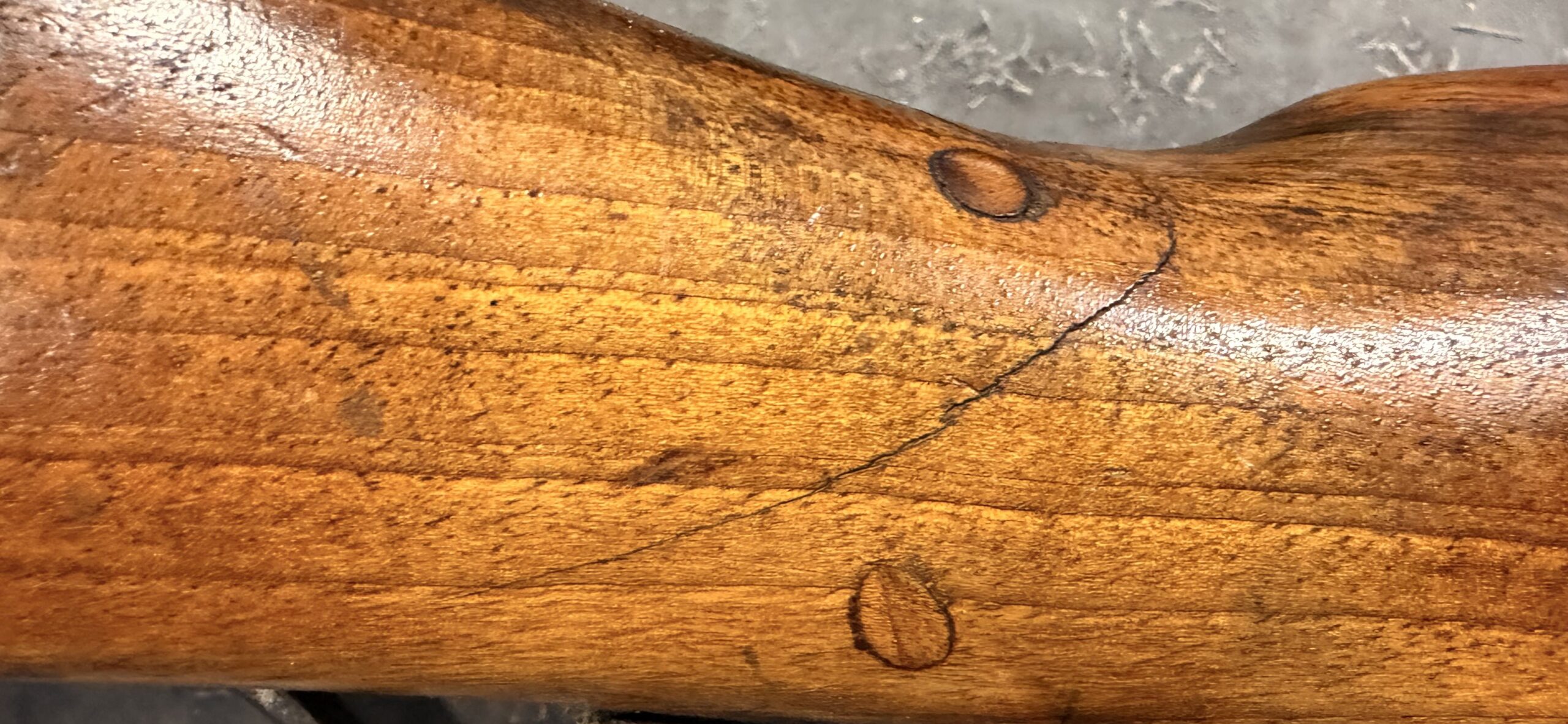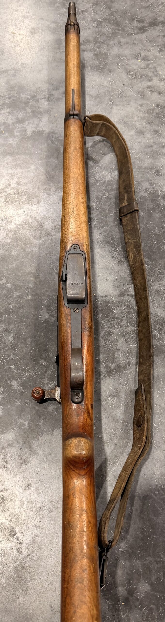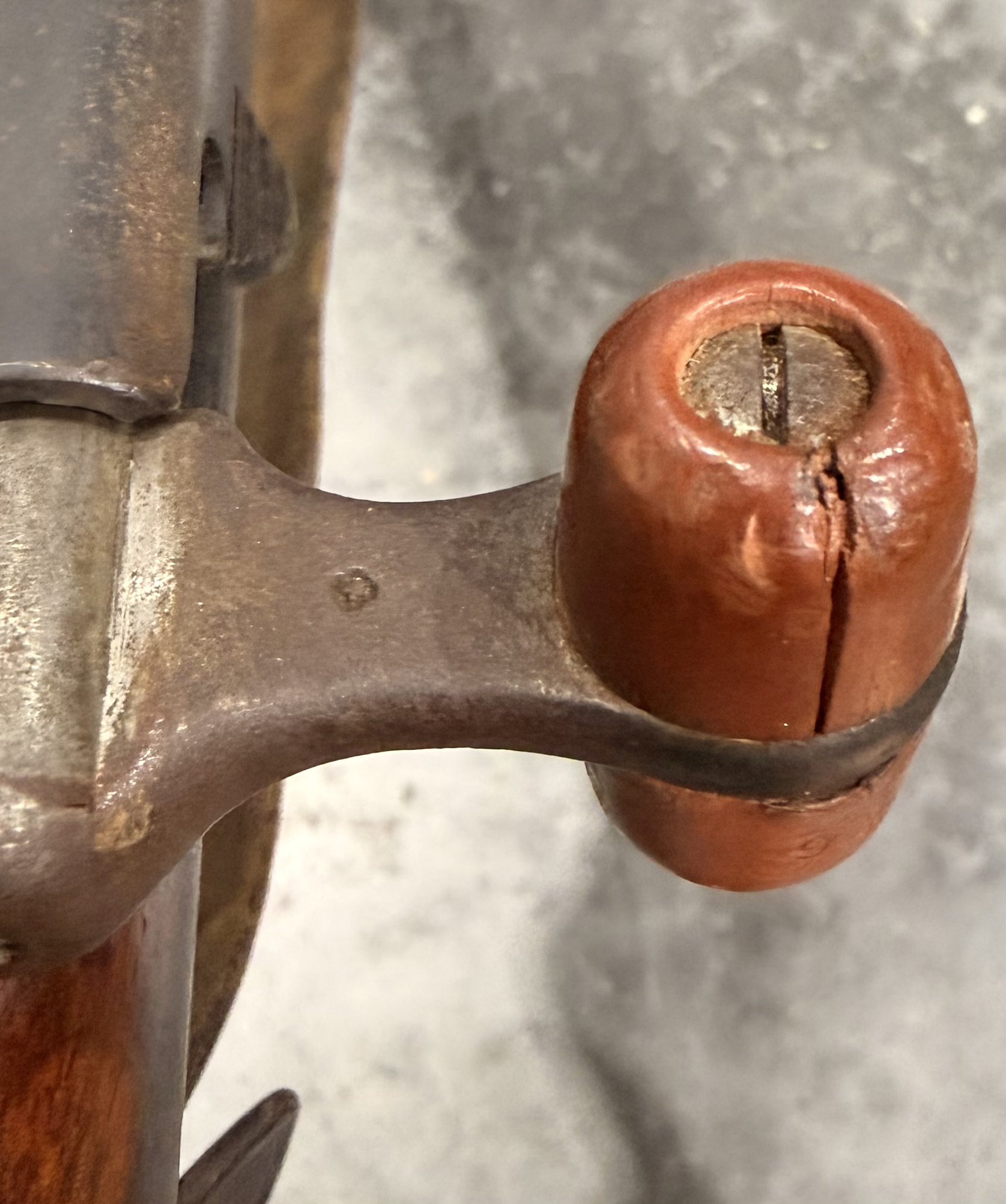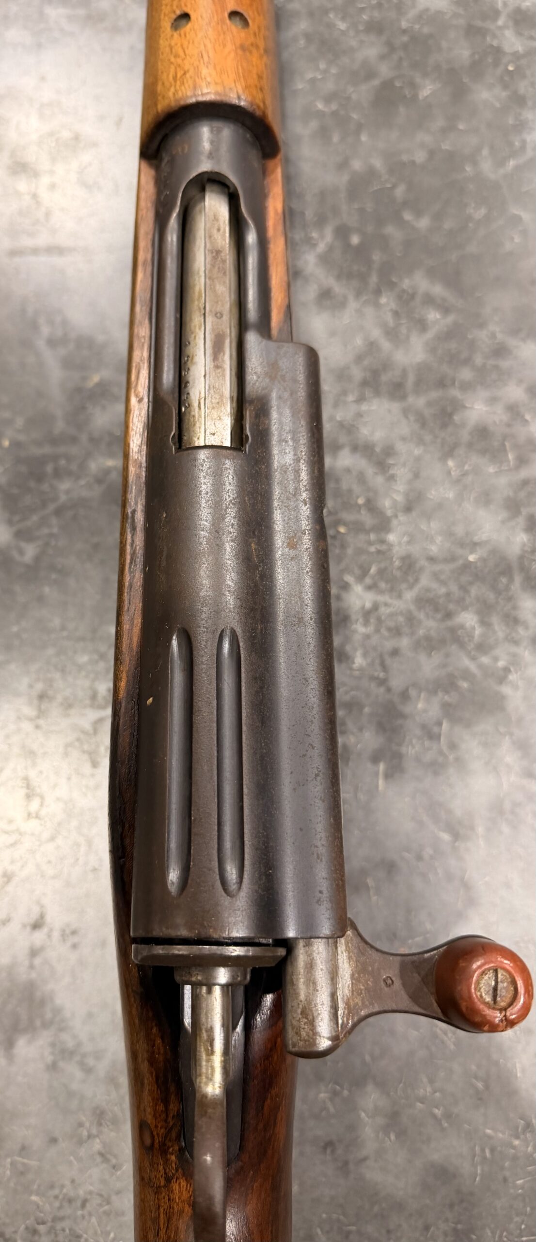 This carbine features matching numbers on the receiver and bolt, but the magazine is not matching. It is complete, fully functional, and in fair condition. The bore is in very good condition, with strong rifling and a clean overall appearance. Please note there is a crack behind the receiver at the wrist and the charging handle is cracked.